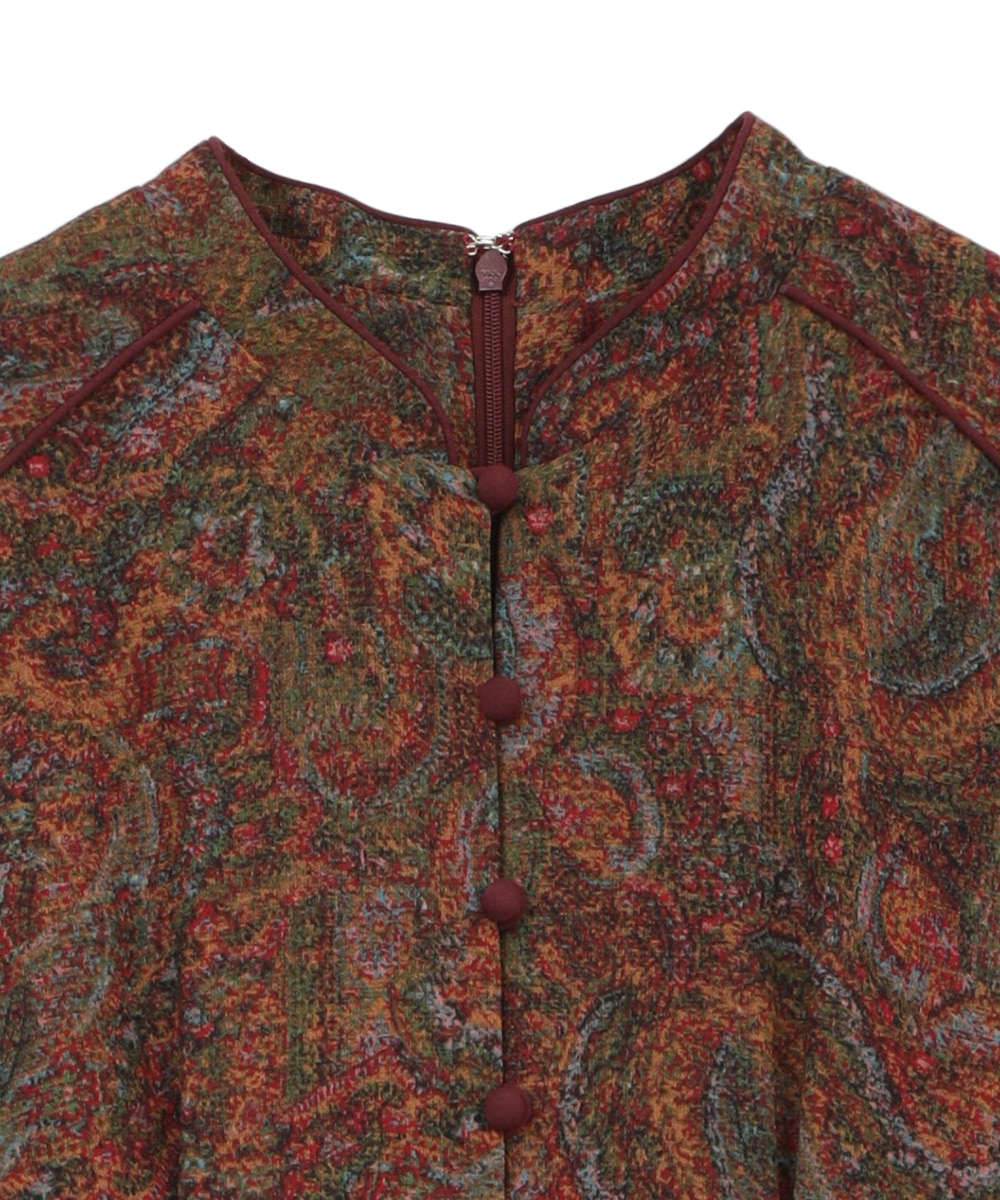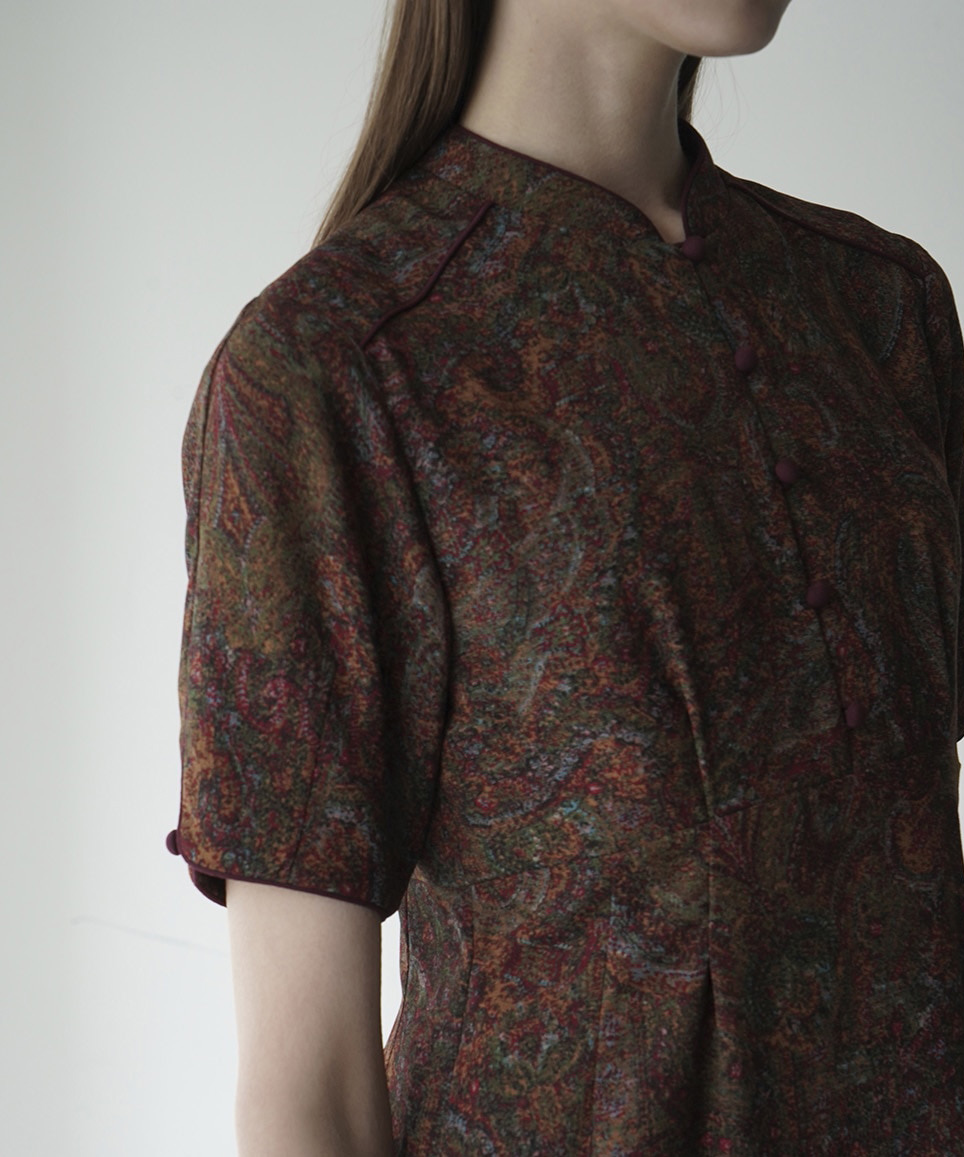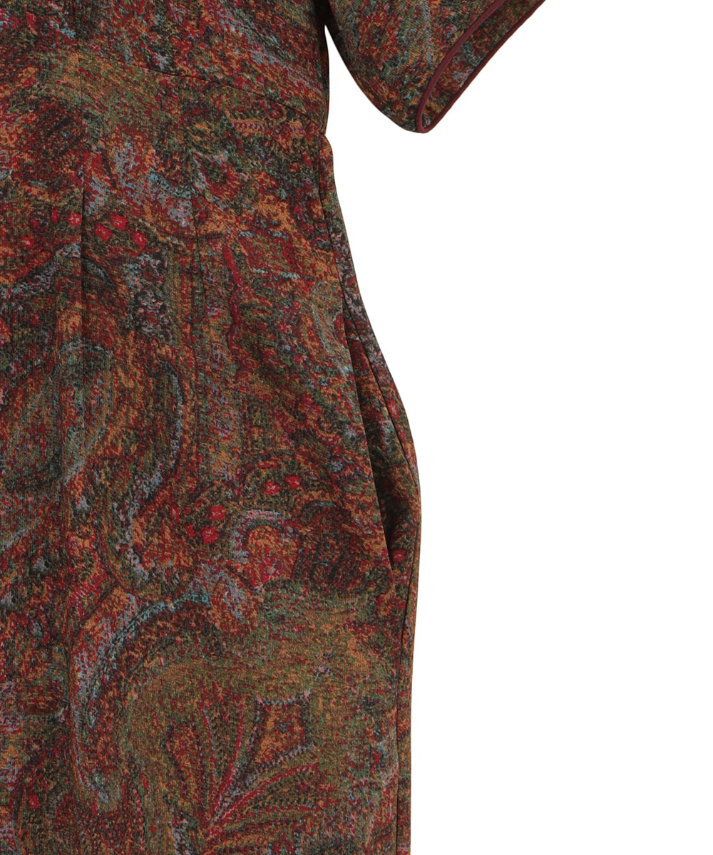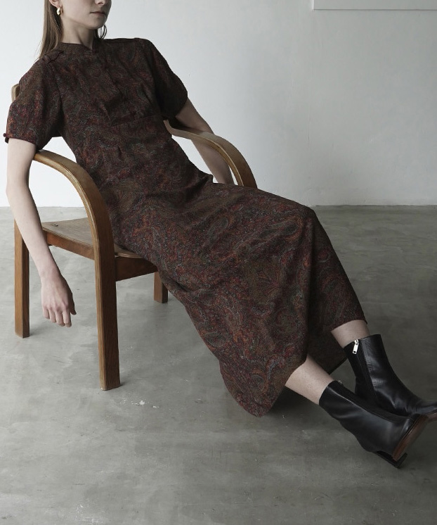 ヴィンテージのゴブラン織りを軽やかな素材にプリントで表現したCLANEオリジナル柄のワンピース。