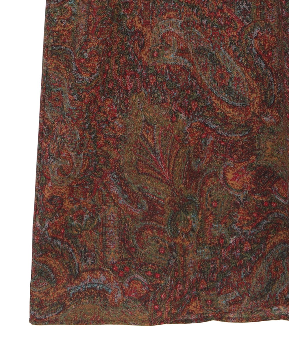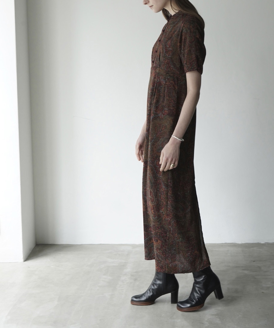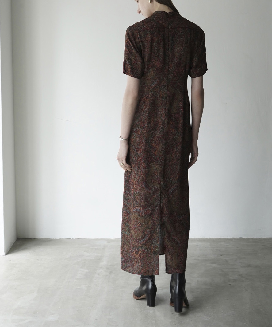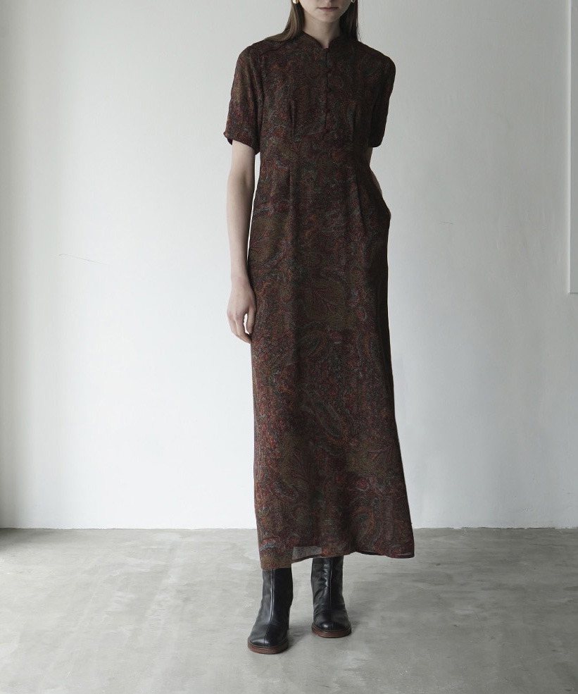 ヴィンテージのゴブラン織りを軽やかな素材にプリントで表現したCLANEオリジナル柄のワンピース。