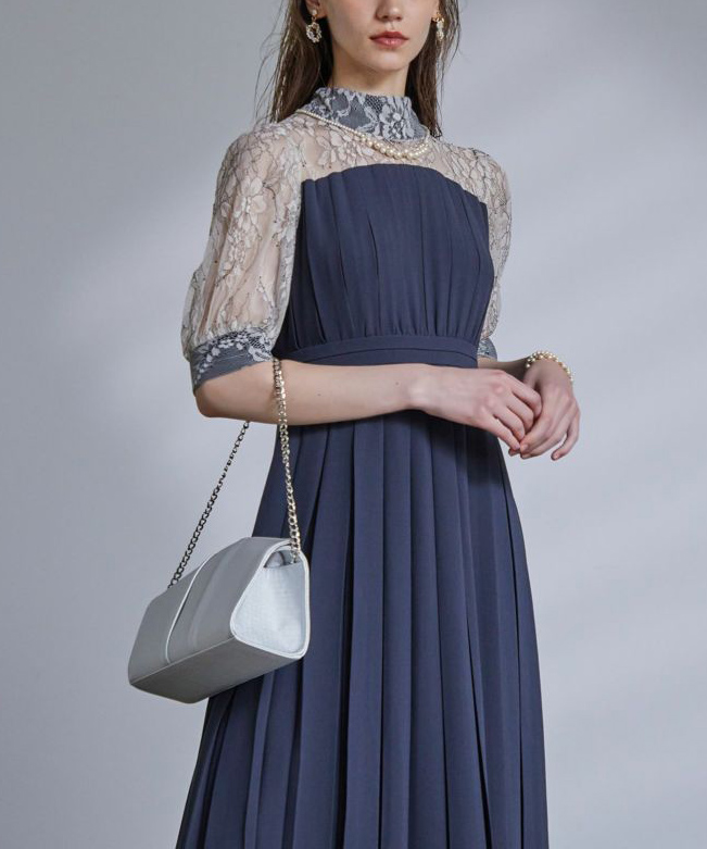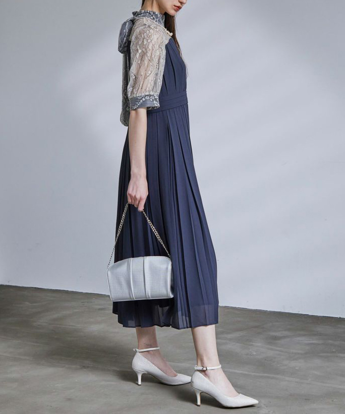 シフォンプリーツを配し、動くたびに遊び心のあるシルエットを作りだしました。