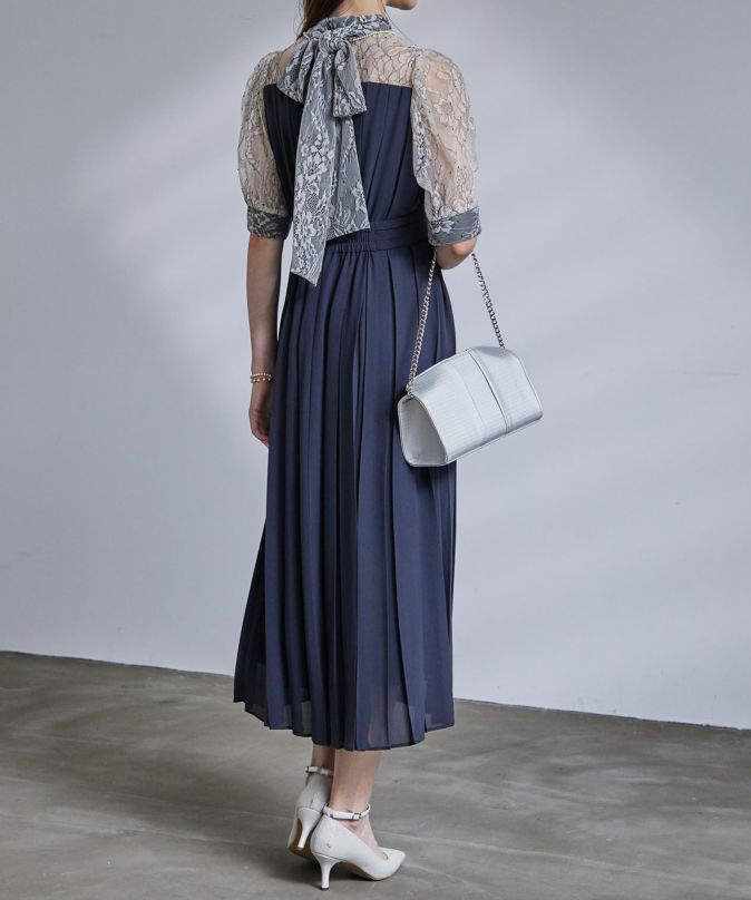 首元のバックリボンは、後ろはもちろんフロントで結んでいただくことも可能となっており、結び方によって色々なアレンジを楽しんで頂けます。