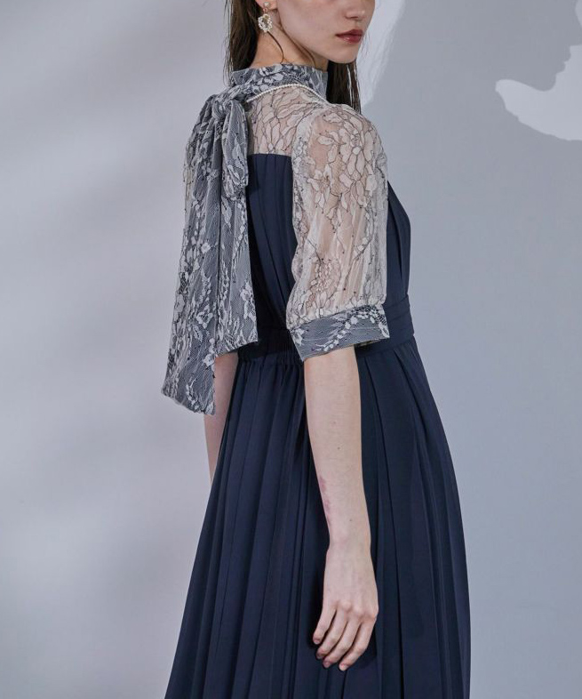 繊細なバイカラーレースとシフォンの素材を組合し柔らかい印象に仕上げました。