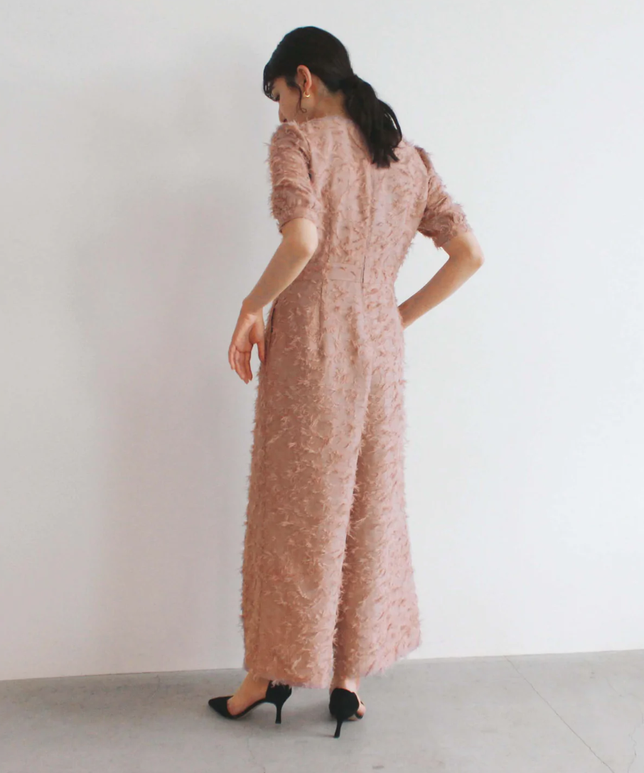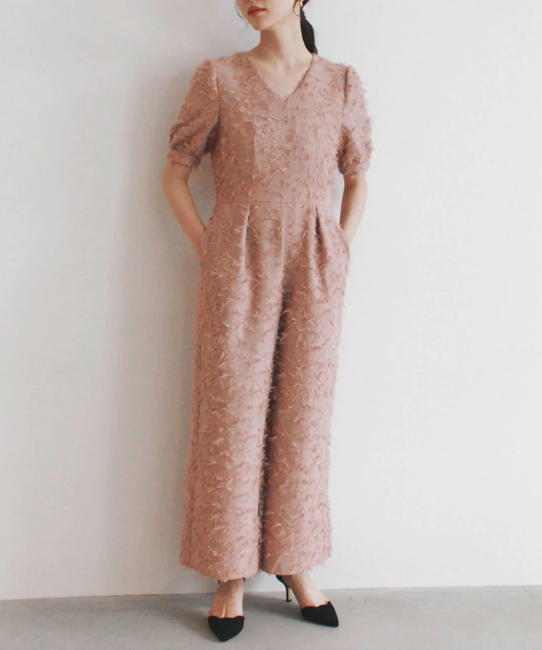デザイン自体はシンプルですが、毛足が長いジャガード素材が、とびきり華やかな印象を与え、オリジナリティある着こなしを演出します。