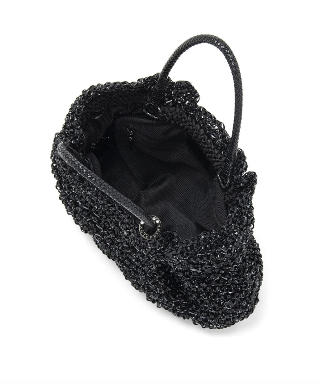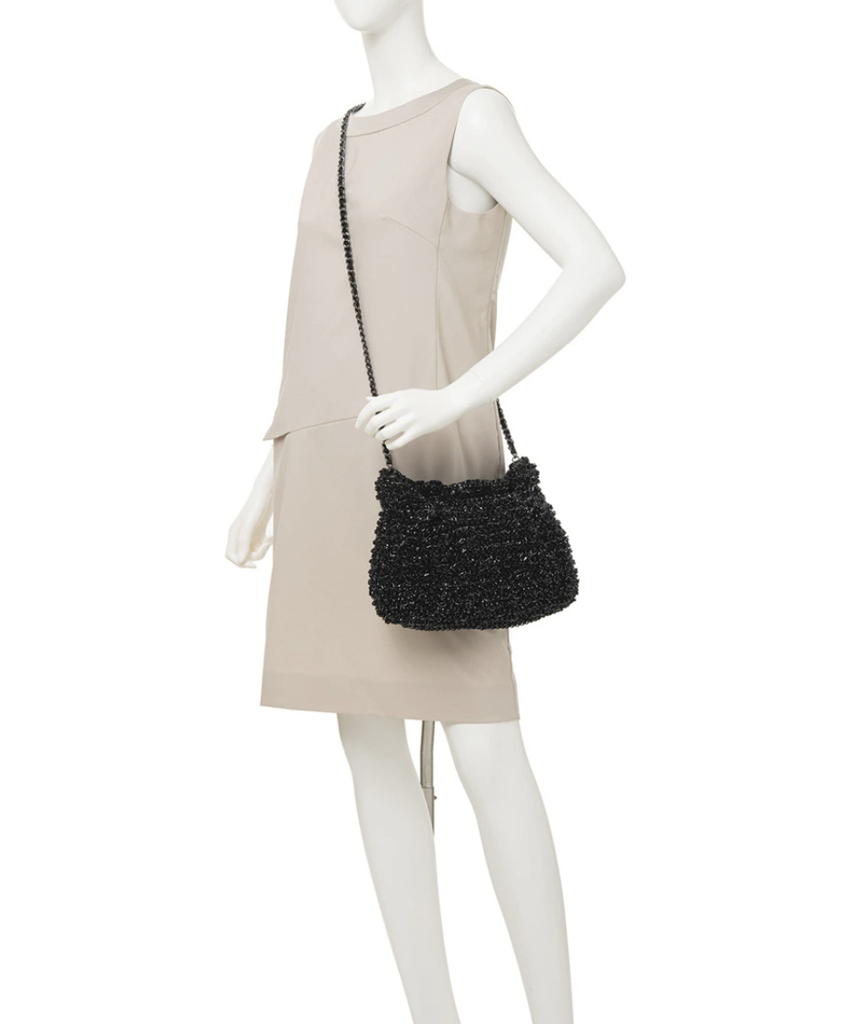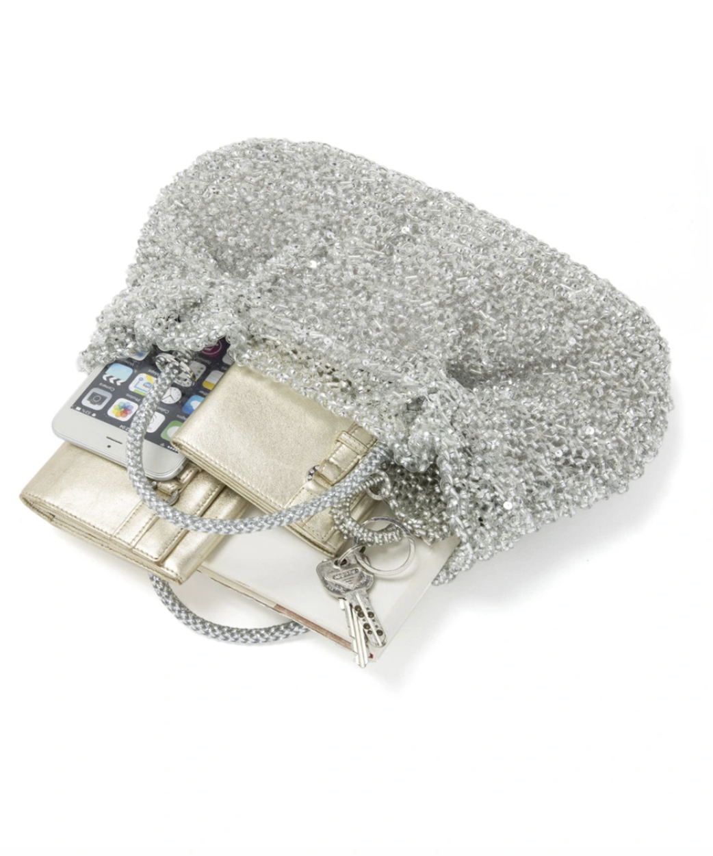 スパンコールにビーズ、そしてワイヤーコードと、異なる輝きがひとつで楽しめる贅沢なバッグです。