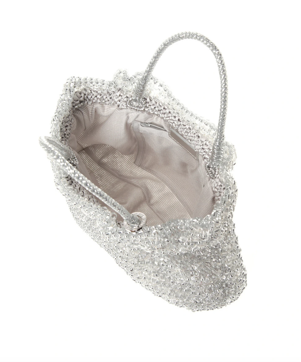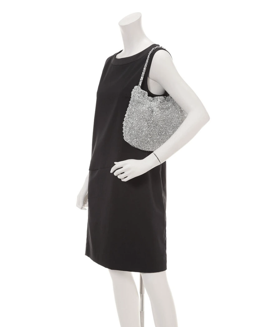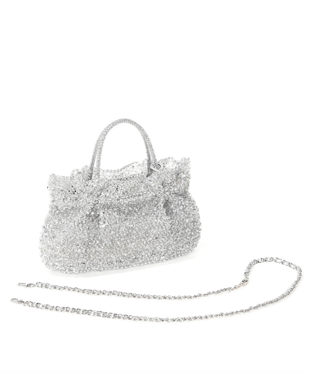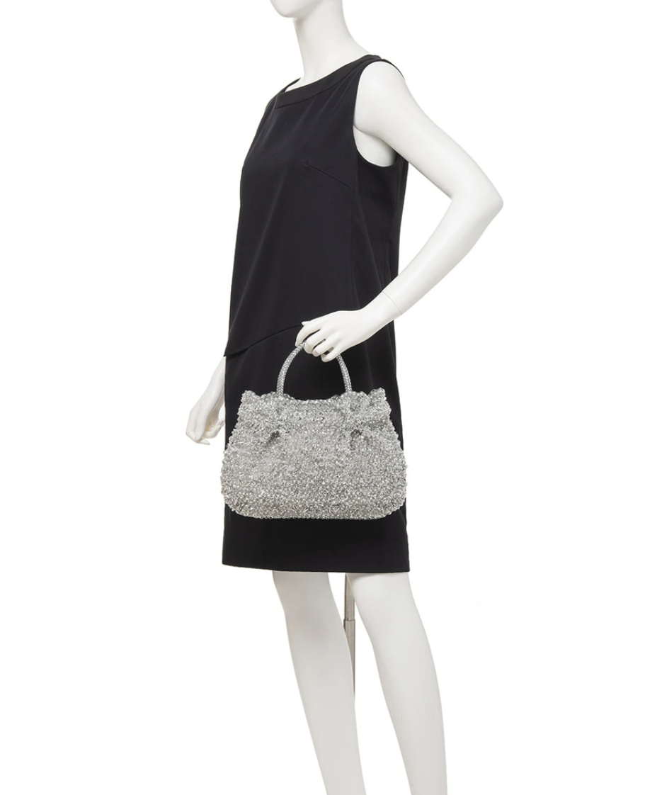 スパンコールにビーズ、そしてワイヤーコードと、異なる輝きがひとつで楽しめる贅沢なバッグです。