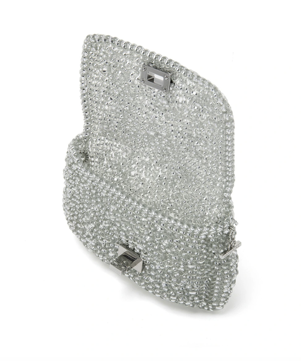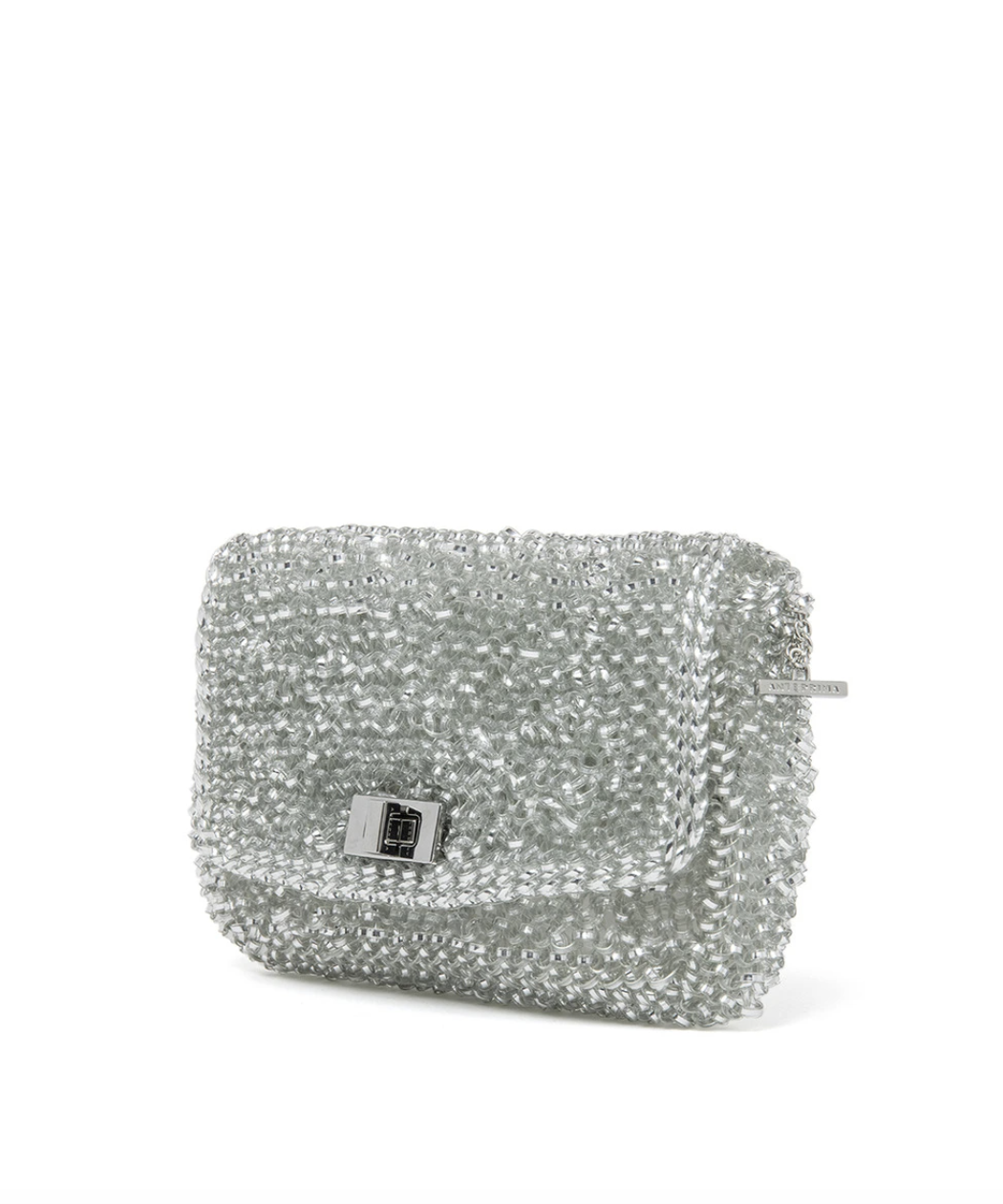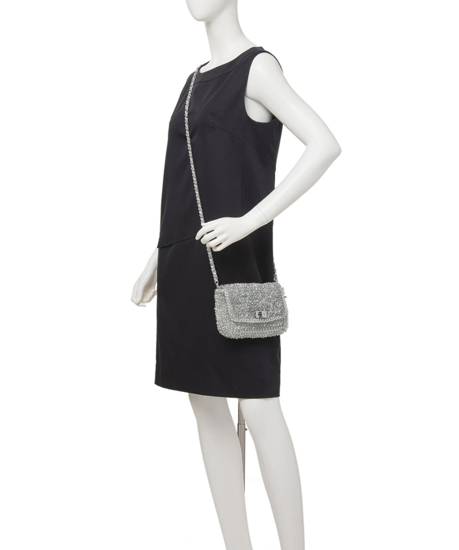 携帯電話やスマートフォン、小銭入れ、グロスなどが入るくらいのサイズで、ちょっとしたお出かけやパーティーシーン、デイリーコーディネートのポイントやサブバッグとしても、その活躍が期待できます。