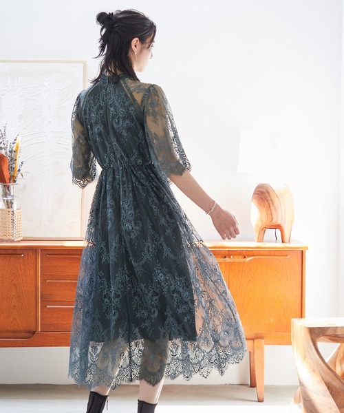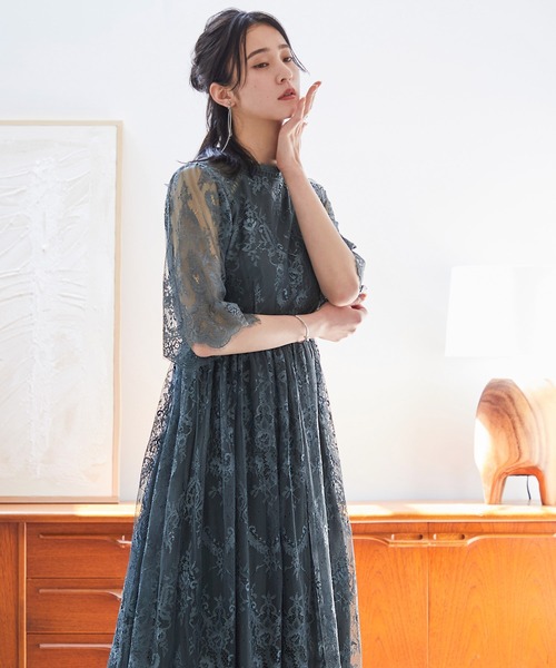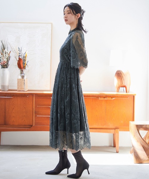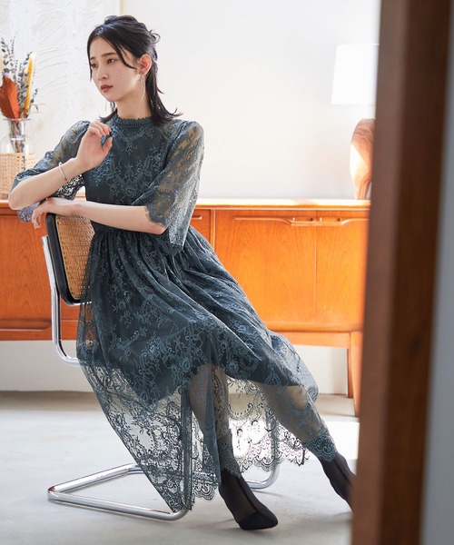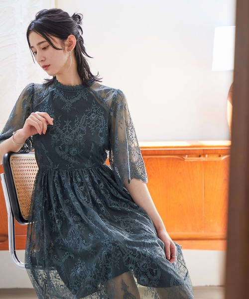 袖は5分丈のレースシアー素材なので二の腕をカバーできます。