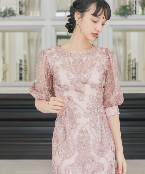 大柄の刺繍レースでレトロな雰囲気のドレスです。