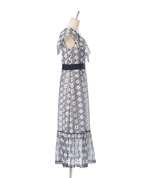 全身に広がる花の刺繍が特徴的なこのワンピースは、ほんのり感じるヴィンテージの雰囲気とモノトーンカラーによって、あまり甘すぎず、年齢を問わず楽しんでいただけるアイテムです。