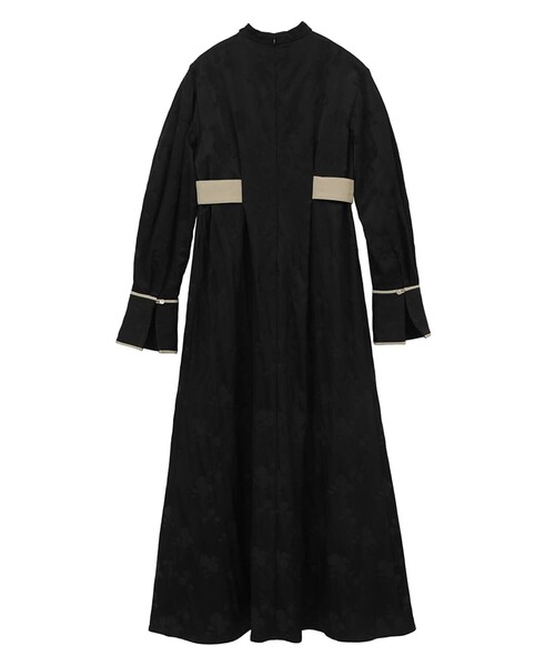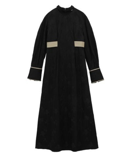 ヴィンテージのような風合いのサテン生地と花柄ジャガードが上品なワンピースです。首元のデザインが特徴的なモード感がCLANEらしいです。