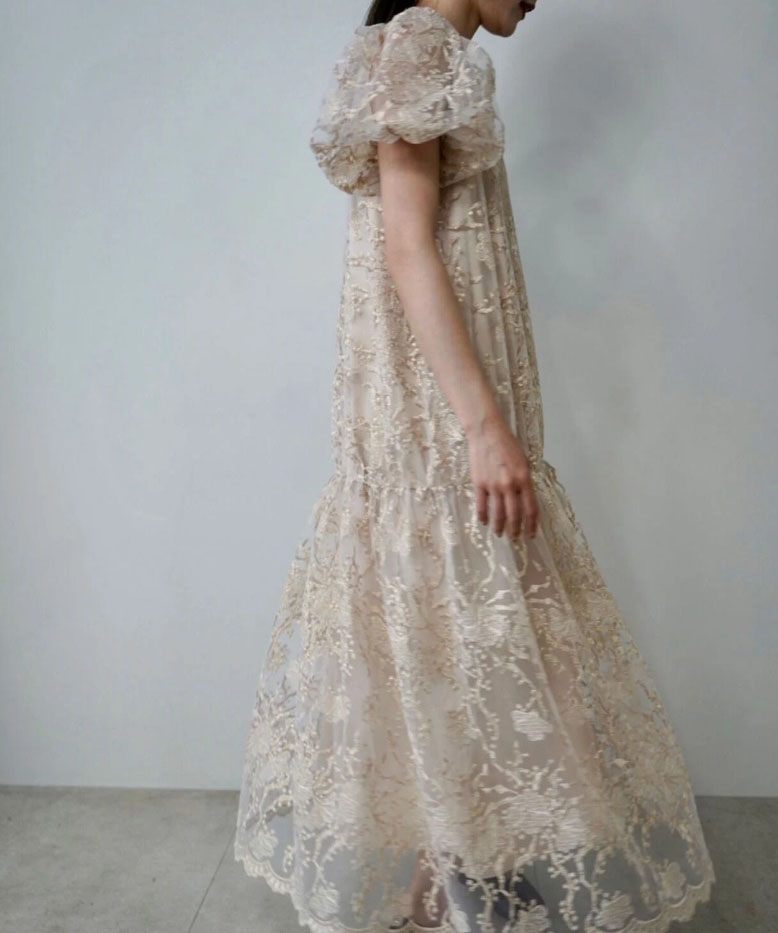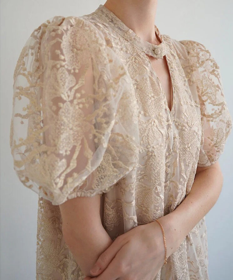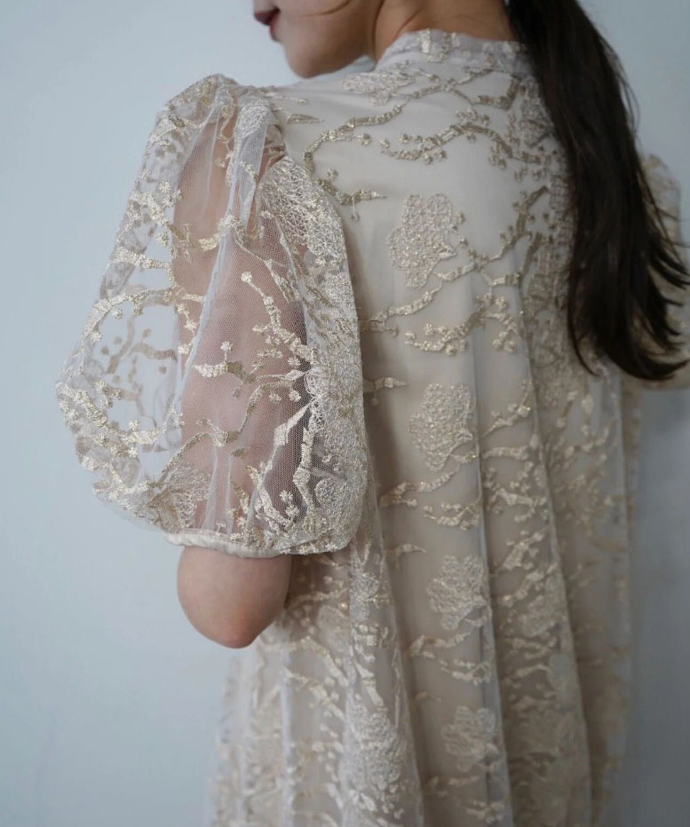 立体感のある生地に袖に透け感を残すことで軽さを持たせつつ、