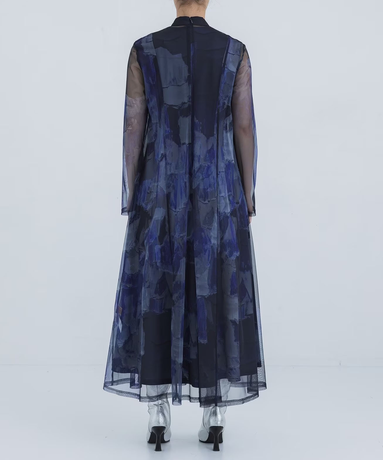 石膏アートからインスピレーションを受けて制作した、オリジナルのアート柄のレイヤードドレス。