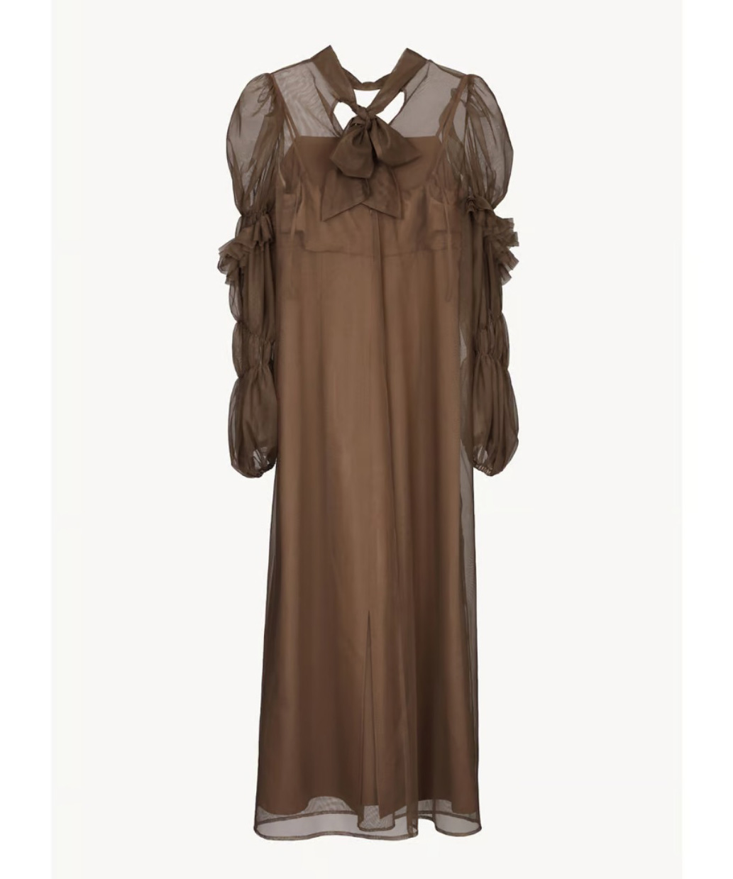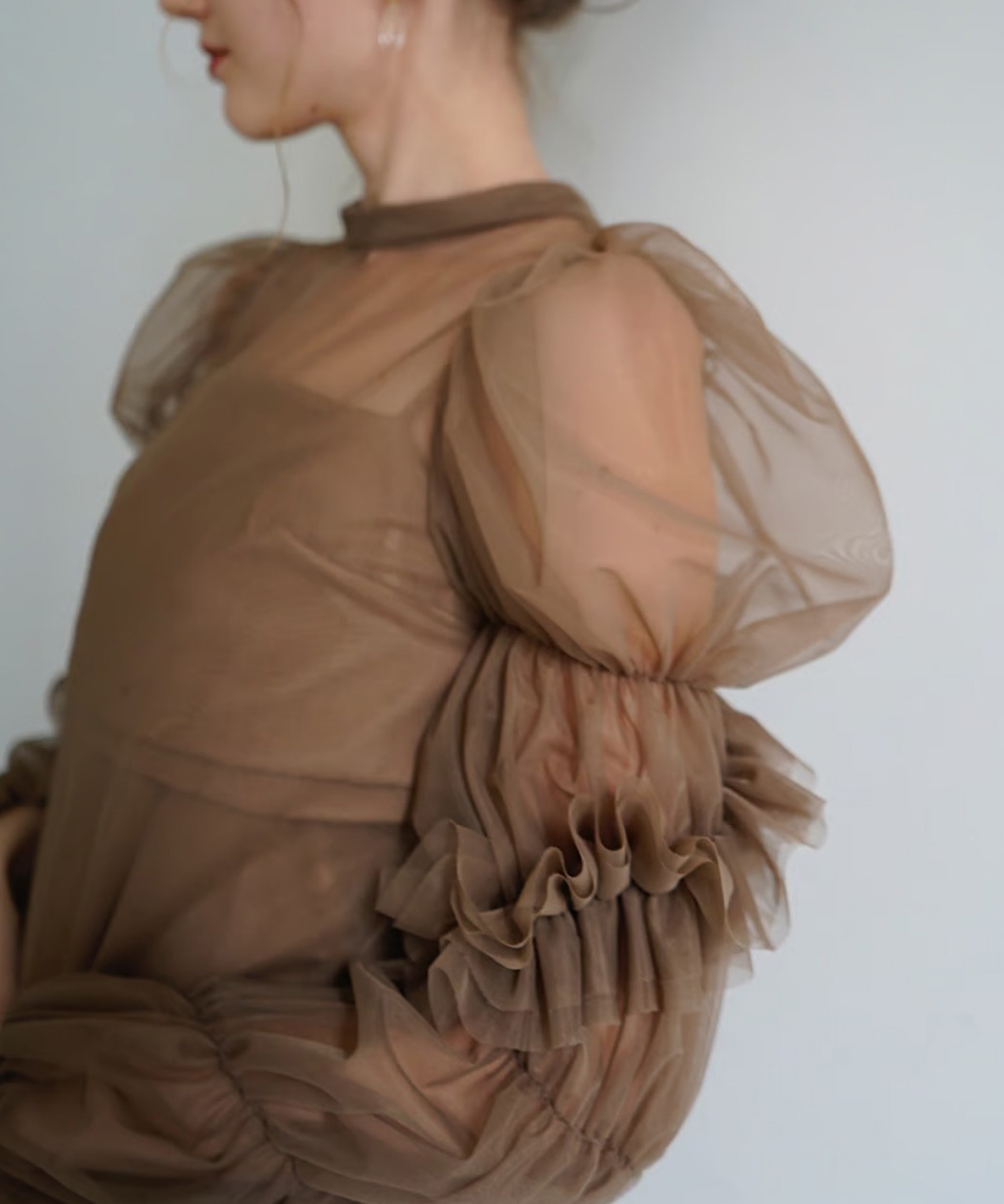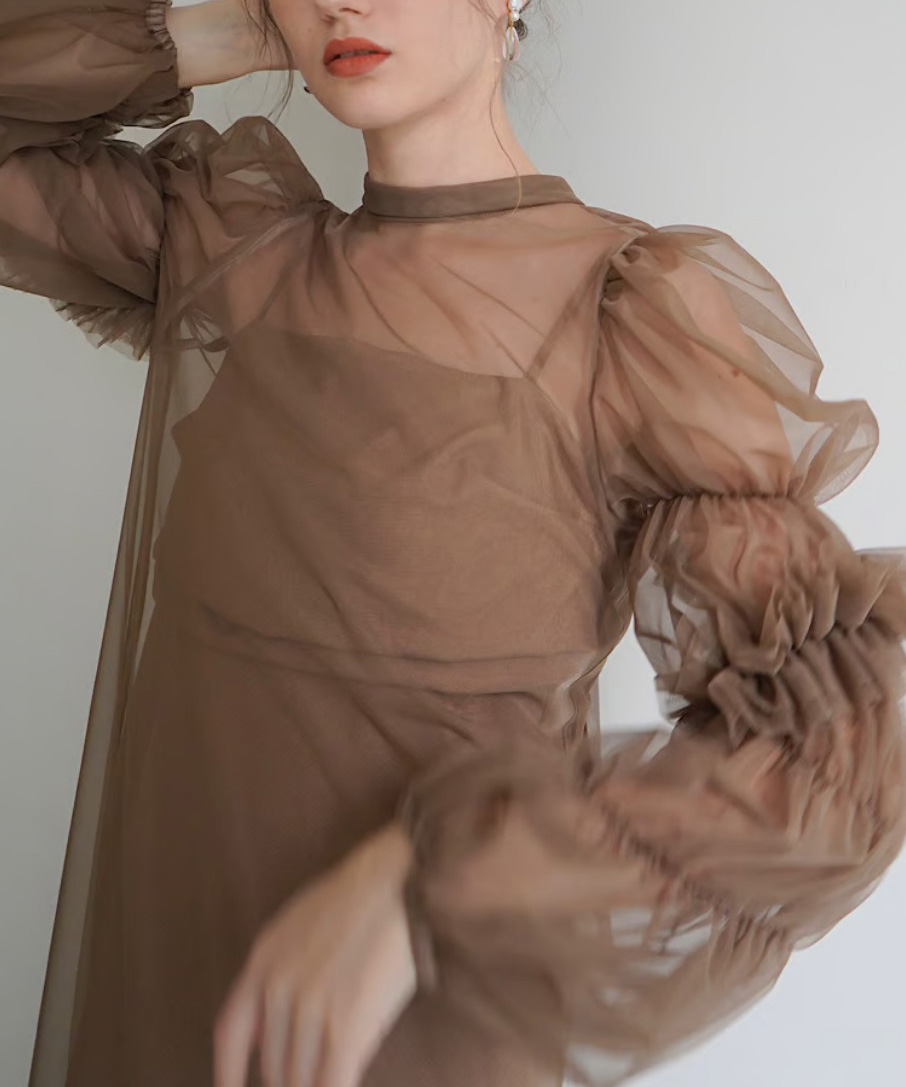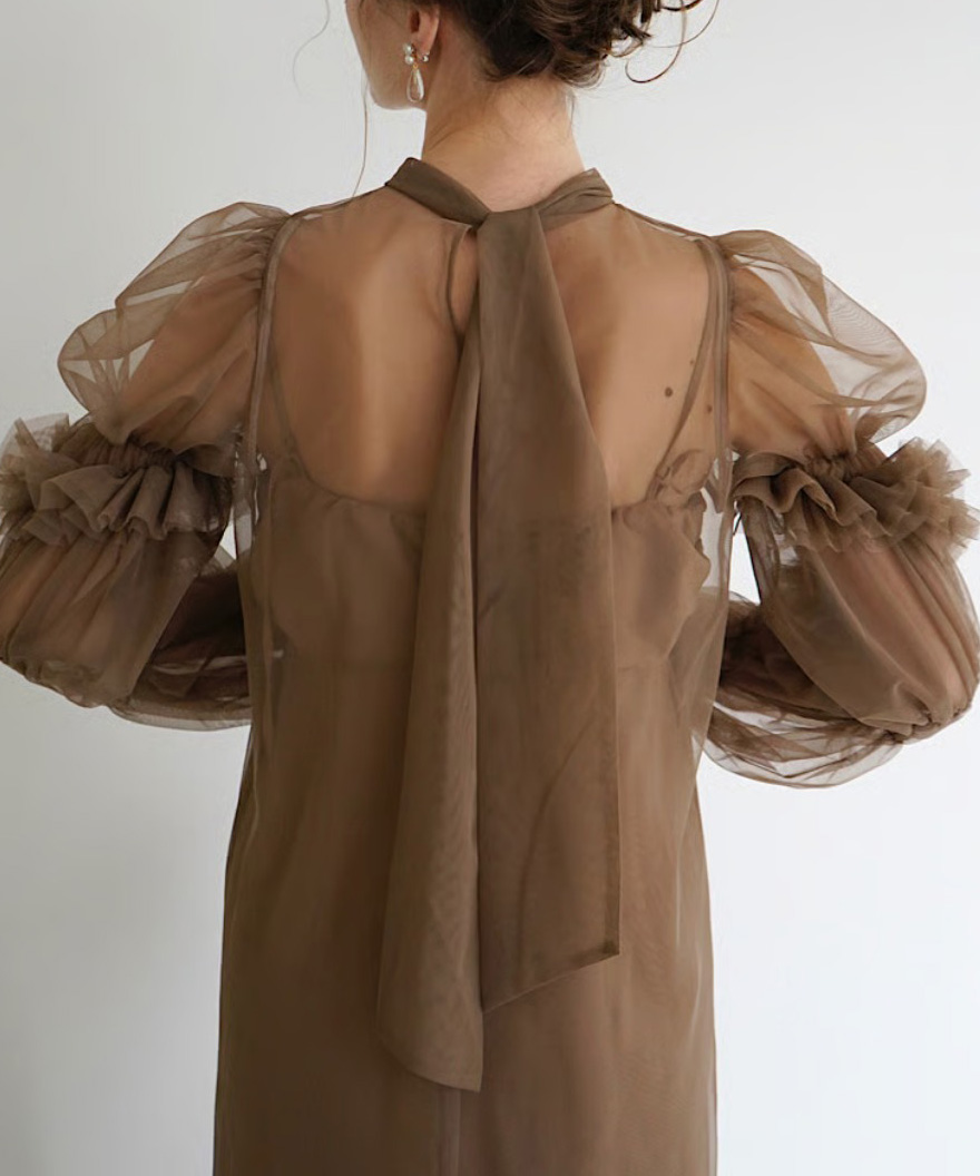 透け感のあるチュール素材をたっぷりと贅沢に仕上げたオケージョンシアーワンピース。