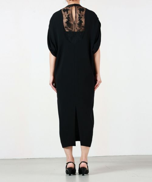 襟のカットラインや二の腕をカバーする袖のディテールが美しいスタイルを魅せてくれつつ、大人な女性も安心して着ていただけます。透け感のある大胆なバックスタイルは繊細なレースでエレガントなニュアンスを加えます。透け具合が気になる場合は、ご自身のインナーで調整可能です。(画像はインナー(レンタル不可)を着用しています)