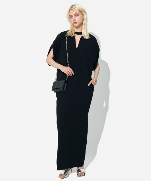 トリアセテートと梳毛調のポリエステルを混合したバックサテンジョーゼットを使用。柔らかくさらりとした風合いと豊かな発色を兼ね備えた生地に仕上げられています。