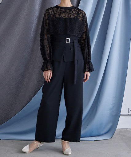 前後2WAYで着まわせるレースボレロでお好きなスタイルでご着用いただけます。ベルト付き(取り外し可能)でウエストをマークしスタイルアップ効果抜群。ウエスト後ろゴム入りで、窮屈さを抑えた仕様で、小物収容できるポケットつきです。