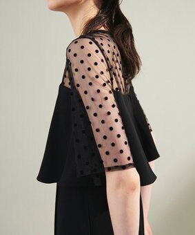 (表地) ポリエステル 100% (別布チュール) ナイロン 100% (フロッキー) ナイロン 50% レーヨン 50% (別布 パイピング) ナイロン 100%