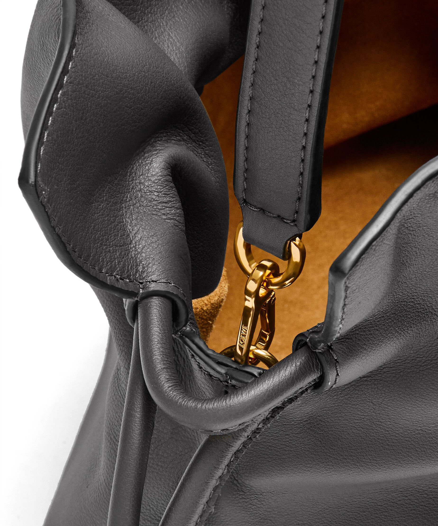 象徴的なコイル状の結び目で仕上げられたドローストリングプルで開閉可能です。