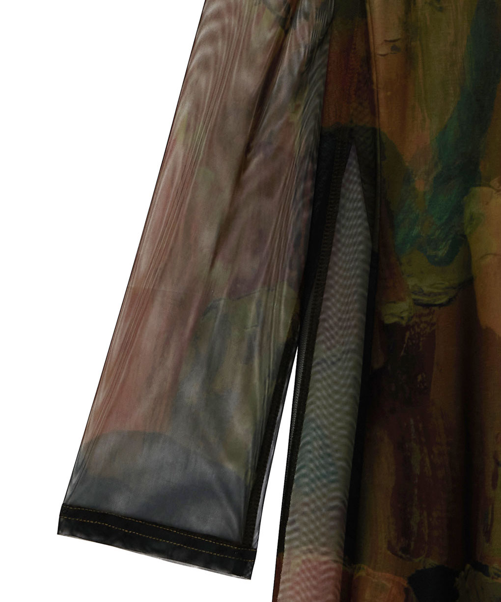 石膏アートからインスピレーションを受けて制作した、オリジナルのアート柄のレイヤードドレス。