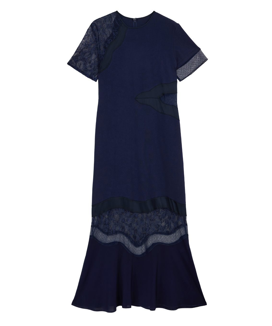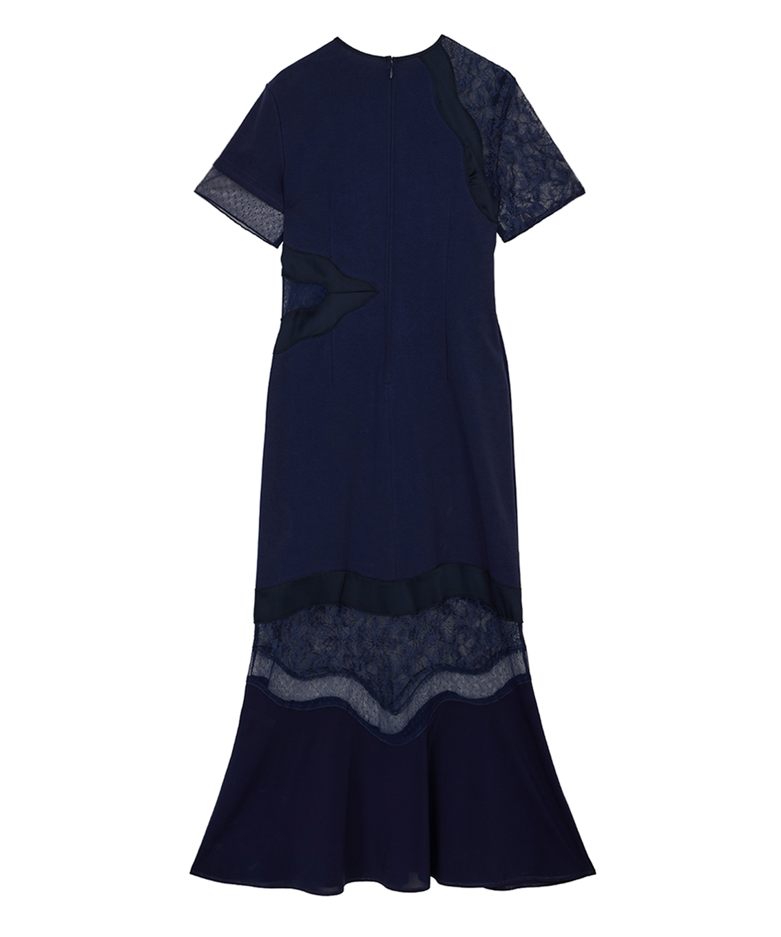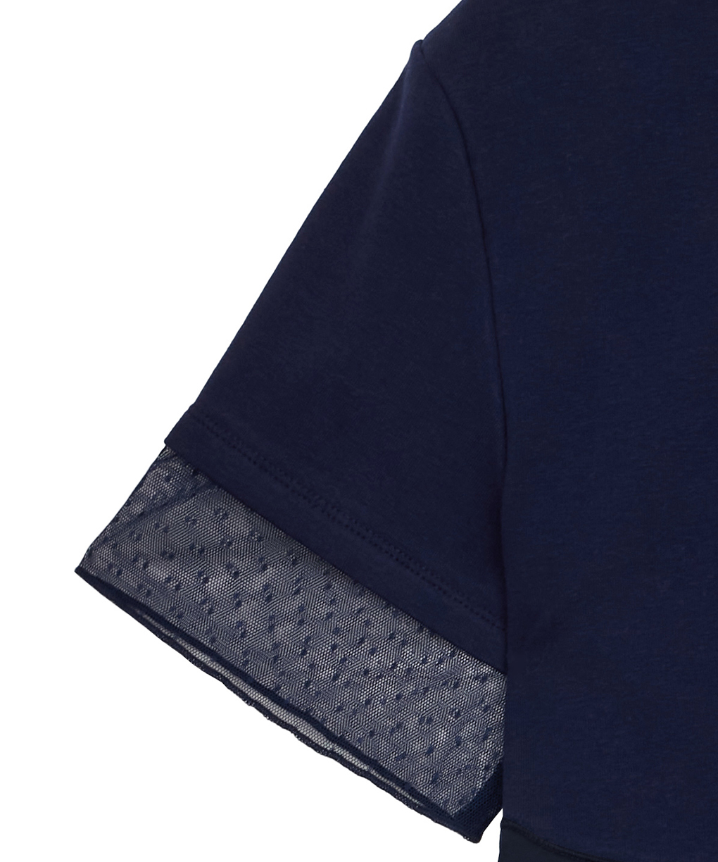 ドットチュールや花柄レース部分シアー感があり女性らしいドレスです。またウエスト部分はラインに沿った綺麗なシルエットが出るため、スタイルアップ効果があります。またカットソー素材のため、伸縮性があり、着心地抜群です。真夏にもサラッとご着用いただけます。綺麗めなカットソー素材のため、ブランド様からオケージョン着用を推奨されておりますが、格式高い式には不向きかもしれません。ヒールのある靴、パールのアクセサリーなどオケージョン向きのアイテムを合わせるのが◎。