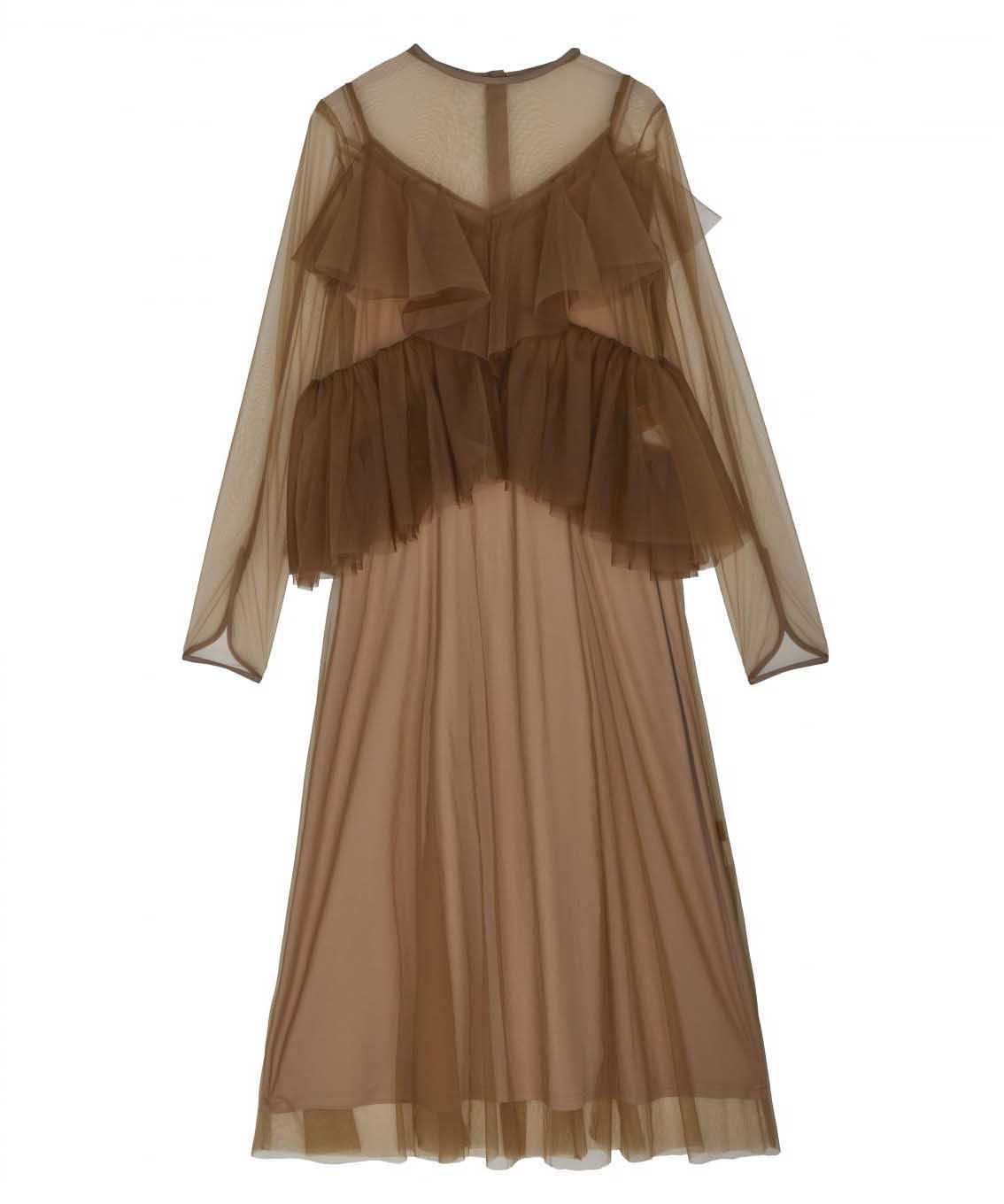 チュール素材をたっぷり使用したレイヤードドレスです。ドレスは程よいフィット&フレアで、肌心地も良いです。華やかなシーンにぴったりです。ペチワンピース付きで、透ける心配はございません。