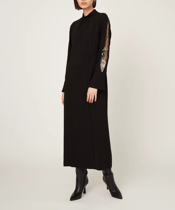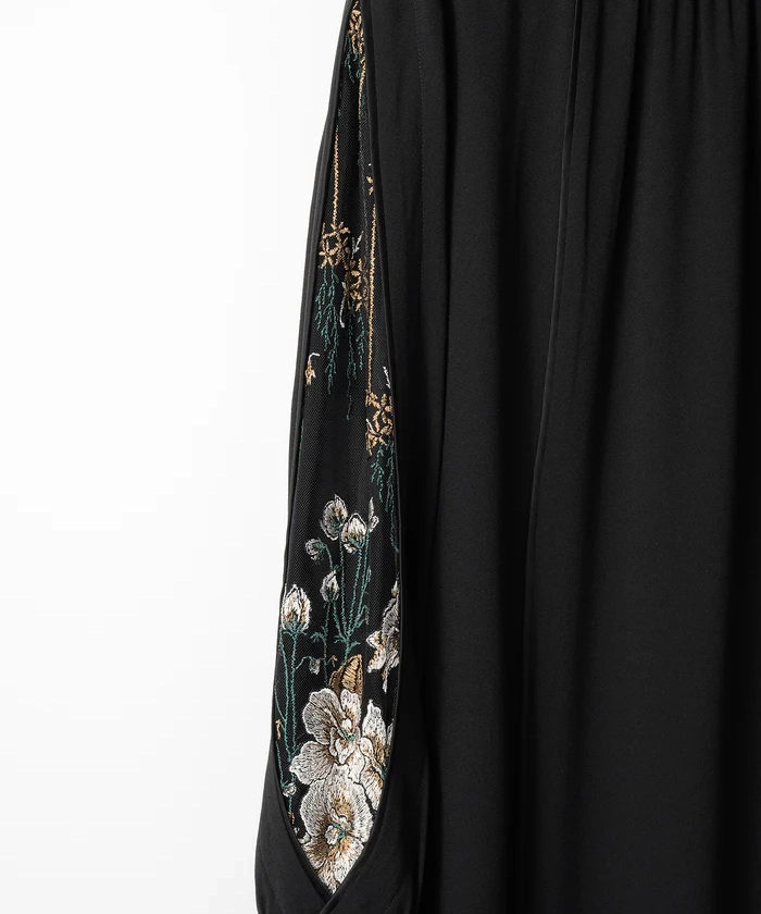 国産のエンブロイダリーレースを使用したFramed flowerシリーズのドレスは、ペンタスとセントポーリアをモチーフにしたリバイバルデザインで、愛らしいペタルスリーブや優れた発色のアセテート素材が立体感を与え、オケージョンシーンに最適な1着です。