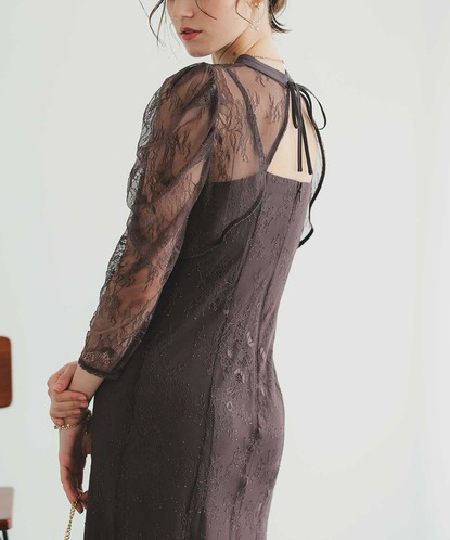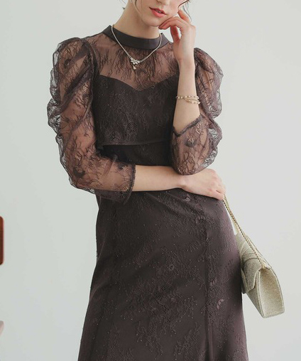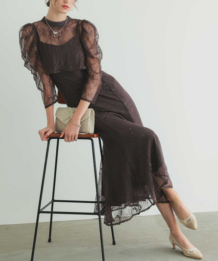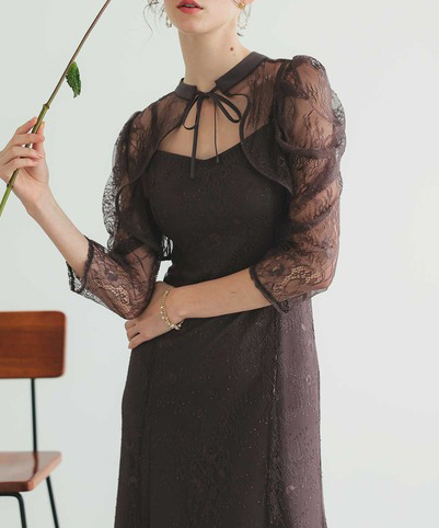 キャミソールワンピースに、レースのボレロを合わせたドレス。