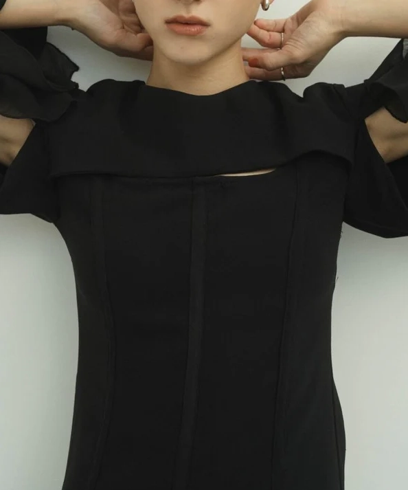 ストレッチ性のあるライトダブルクロス生地で仕立てられたワンピースは、フロントにグログランテープであしらわれたブランドロゴがモード感を高め、抜け感のあるクロップド袖丈でシーズンを問わず幅広いシーンで活躍する一枚です。