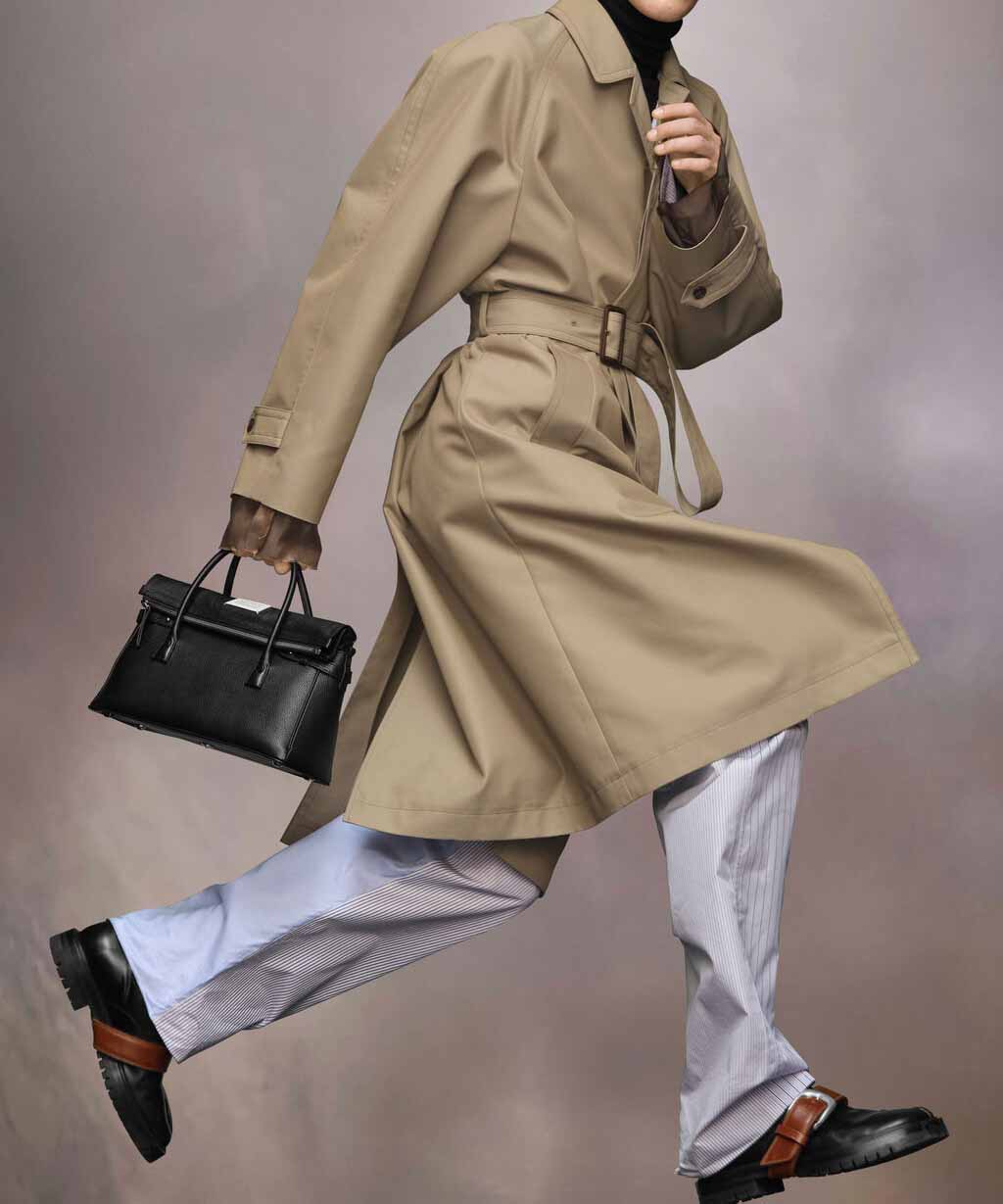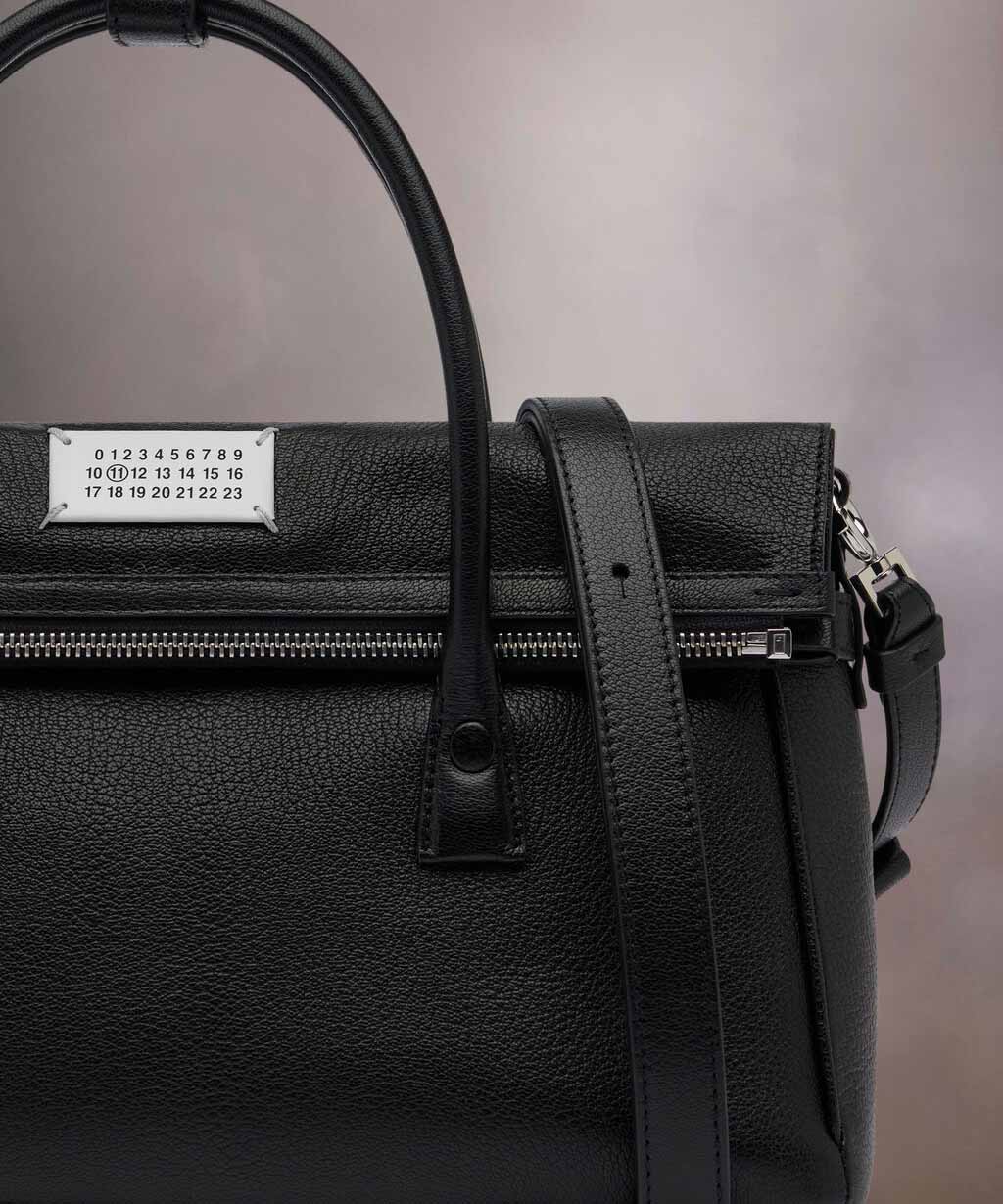 こちらはとても柔らかいゴートレザーを使用した「5AC」ハンドバッグで、特徴的なトップハンドルと折り返しデザインが魅力です。フロントのロゴラベルがアクセントとなり、「5AC」ラインの名前はフランス語の「SAC」に由来しています。また、メタル製リベットは手作業でレザーに覆われ、クリーンな仕上がりが洗練された印象を与えます。
