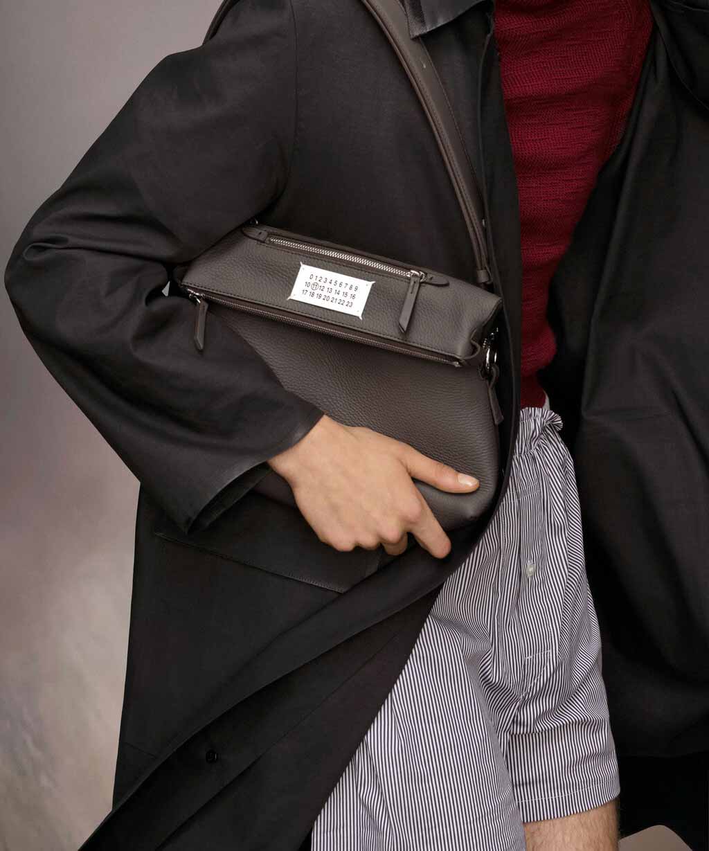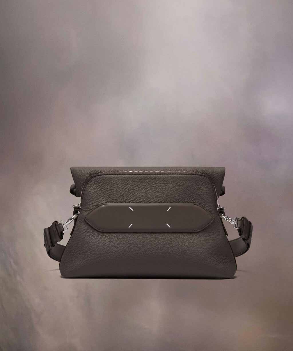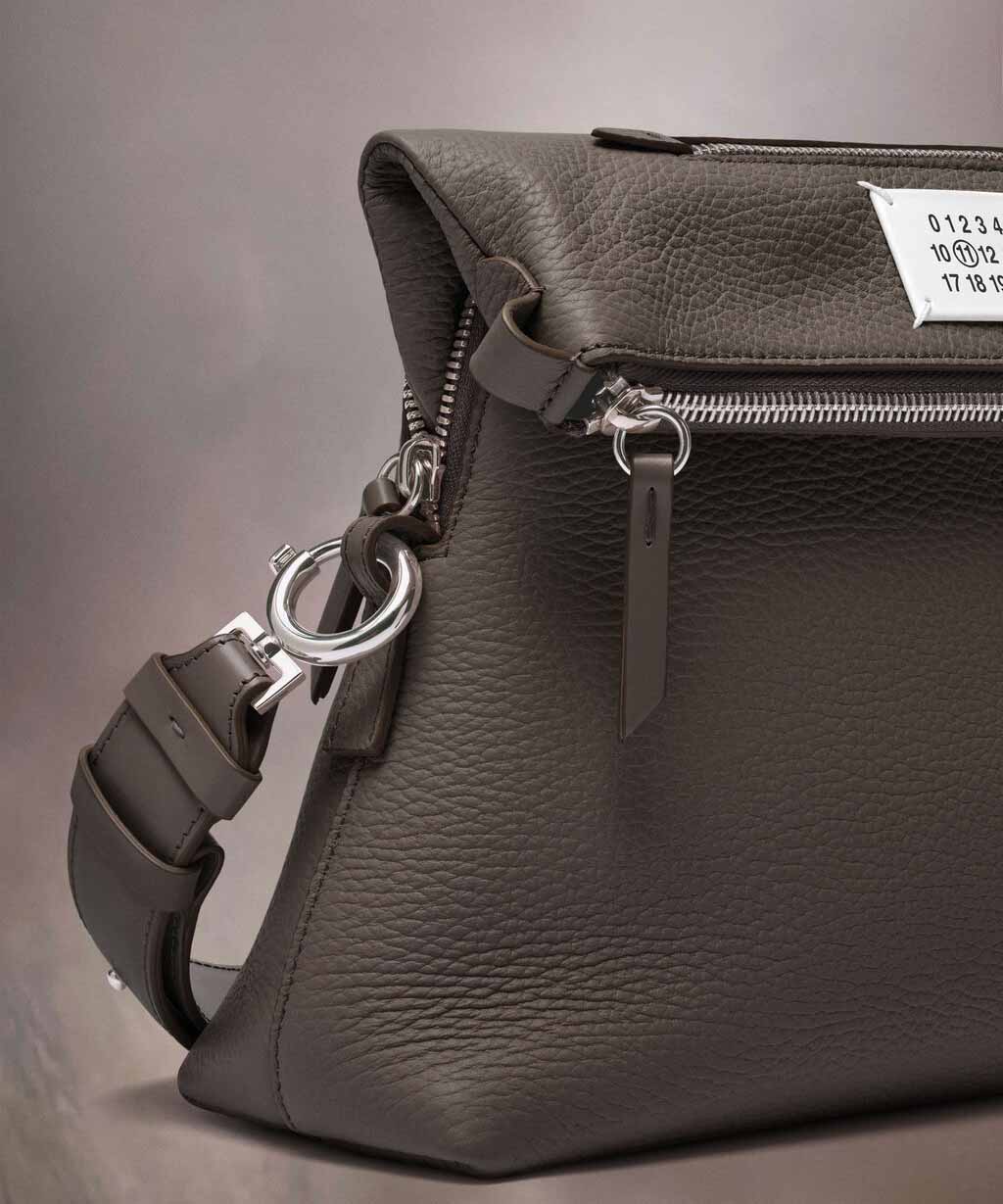 こちらはディアレザー製の5ACショルダーバッグで、フロントのロゴがアクセントとして際立っています。バックには4本の白いステッチが施されており、シンプルながらも洗練された印象を与えています。