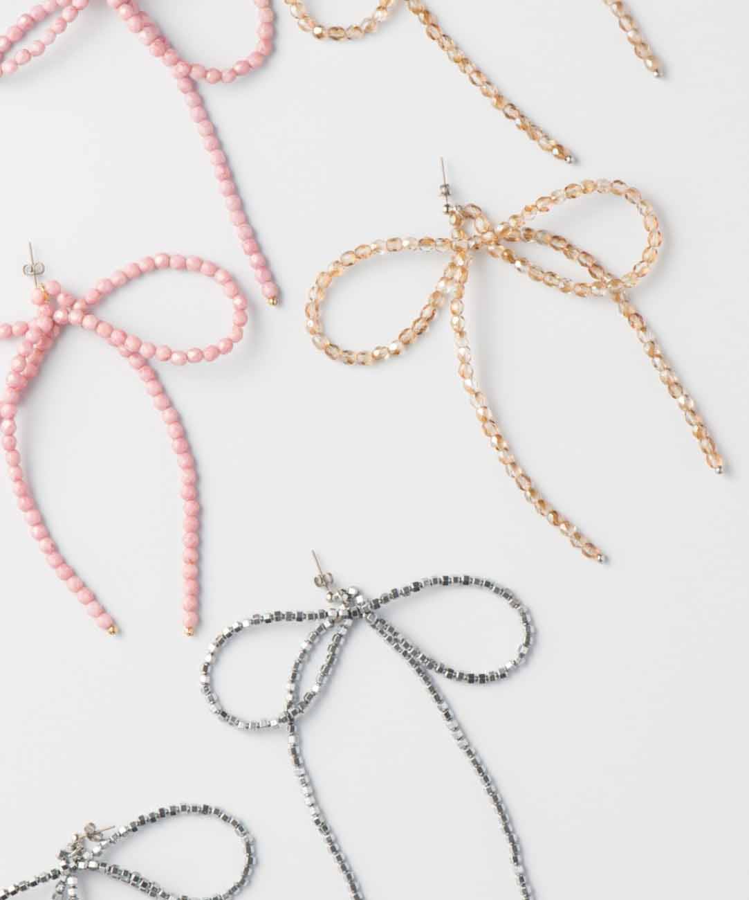 顔回りに大きめのリボンシルエットが甘く華やかな印象を与え、旬のリボンモチーフは小物から取り入れやすく、冬のイベントシーンなど華やかな場面でも活躍します。