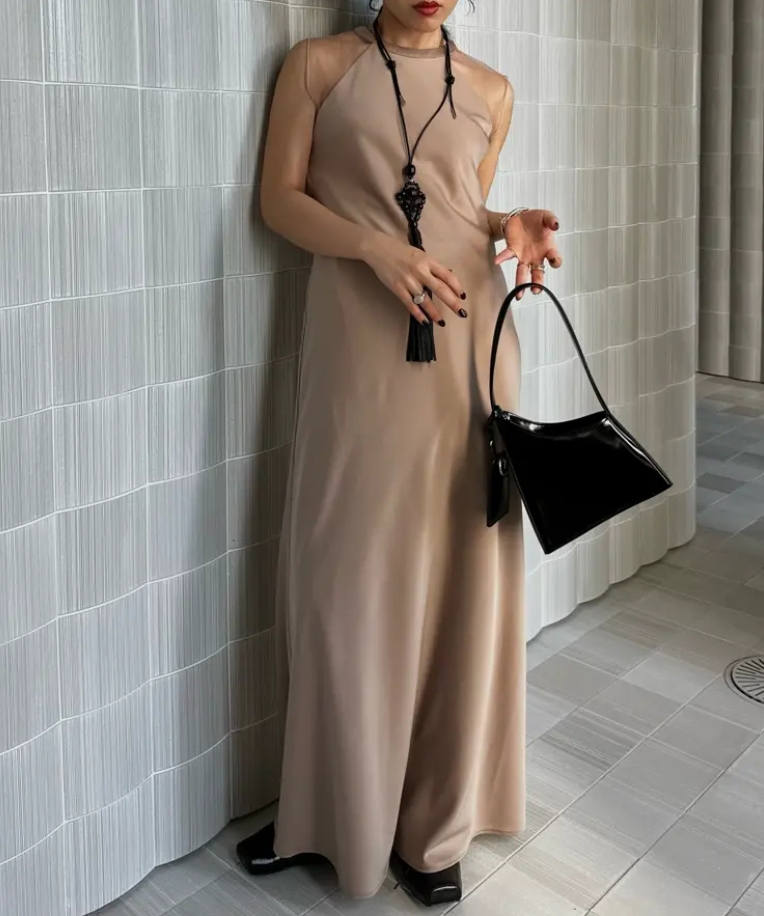 程よい光沢感が大人レディな雰囲気を引き立て、セミフレアシルエットはスタイルアップ効果を狙えます。