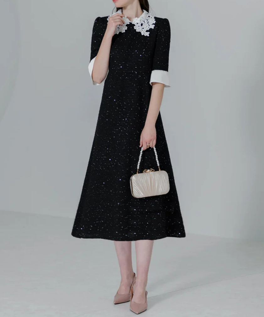 BLACKには存在感のある輝きを放つスパンコールを使用し、歩く度に煌めきエレガントスタイルを叶えます。