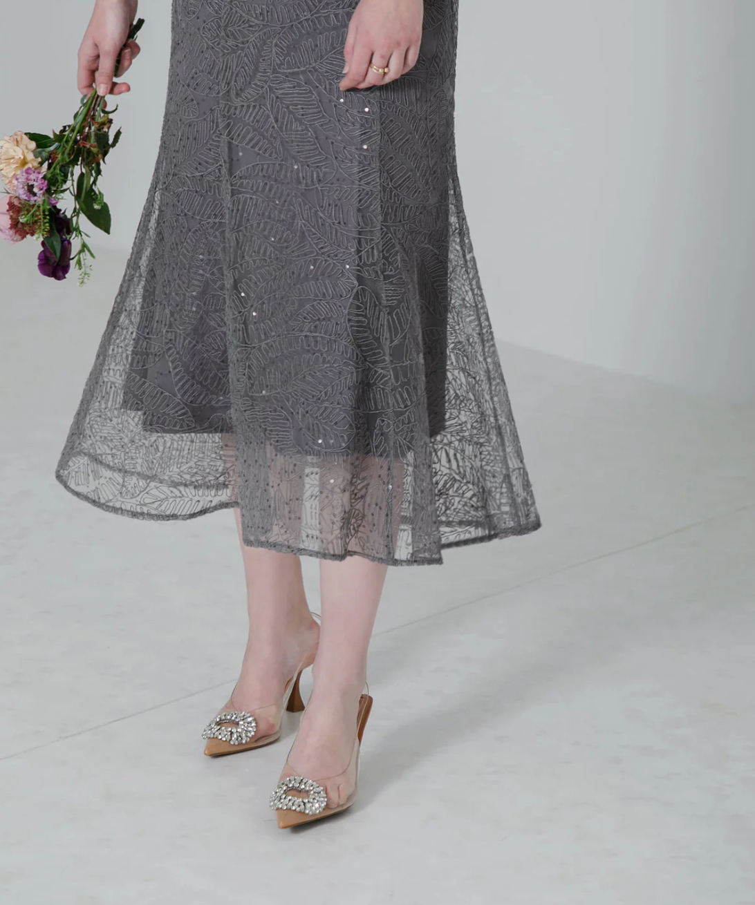 こスパンコールで華やかに仕上げ、エレガントさを引き立てます。