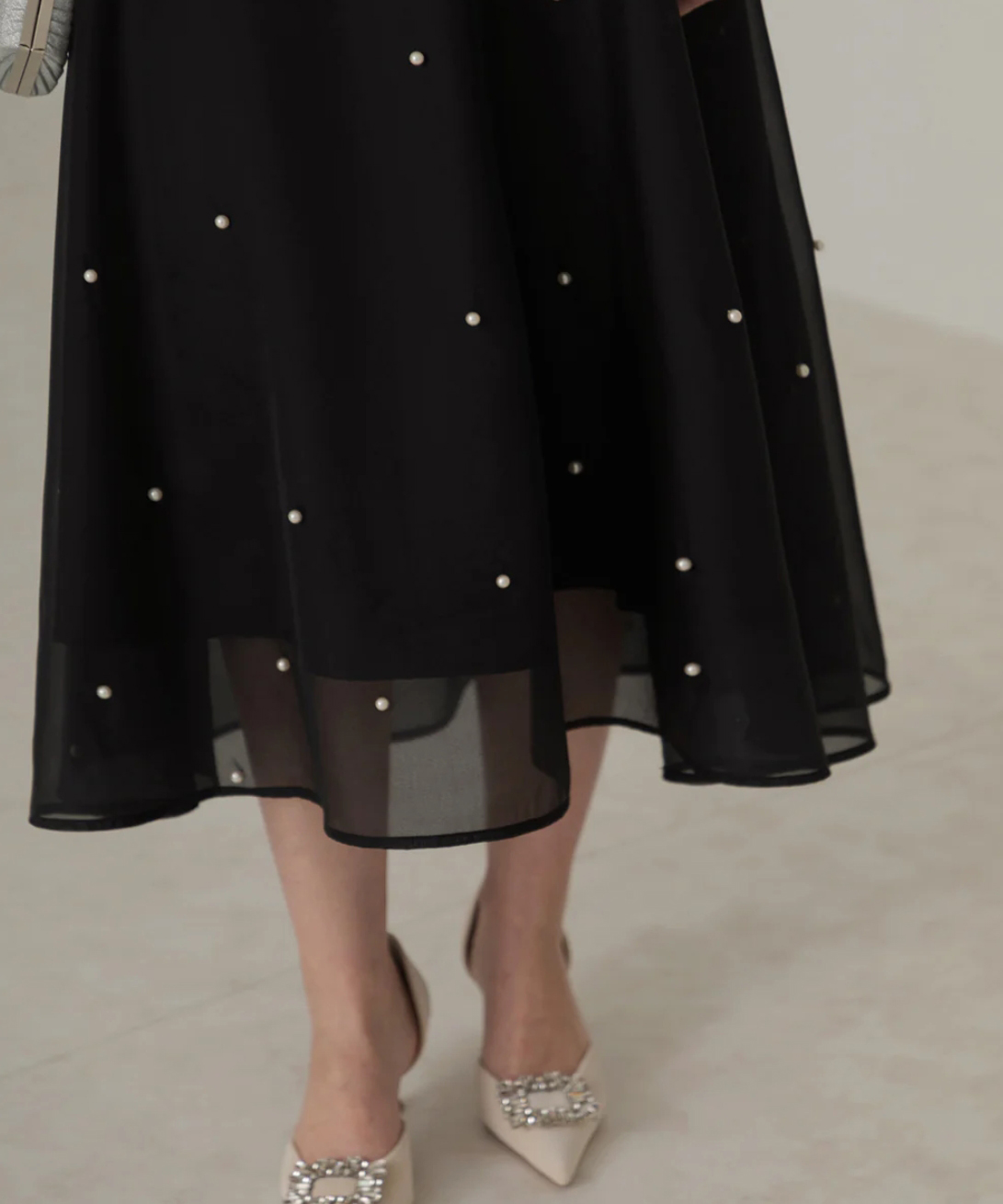 全体的に散りばめられた小粒のパールが高級感と繊細な輝きをプラスしシンプルなカラーを引き立てます。