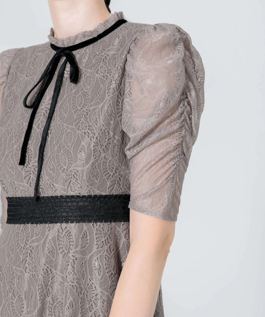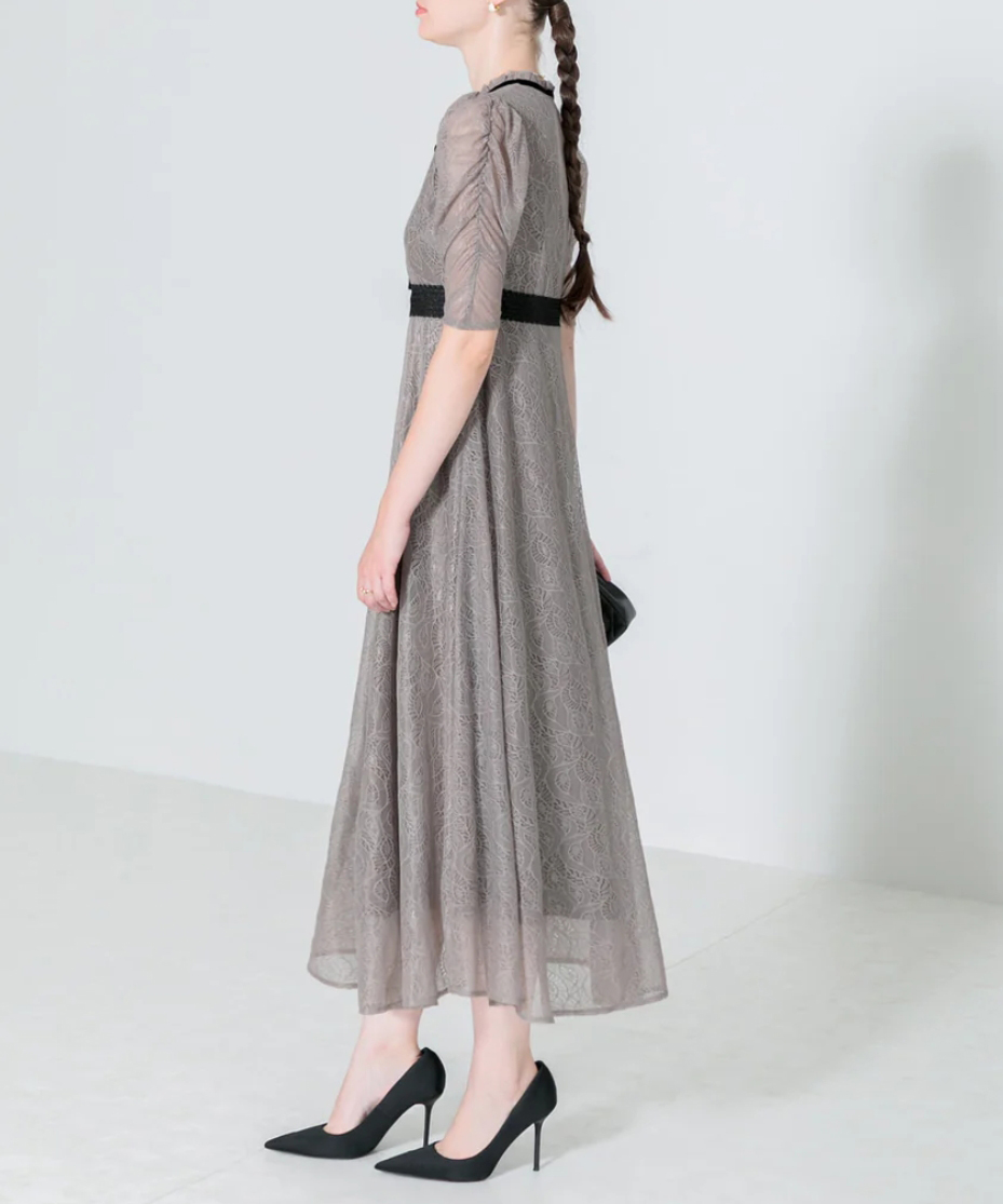 配色ネックリボンとウエストマークが上品でおしゃれなドレス。