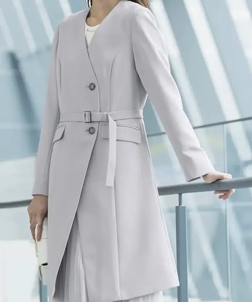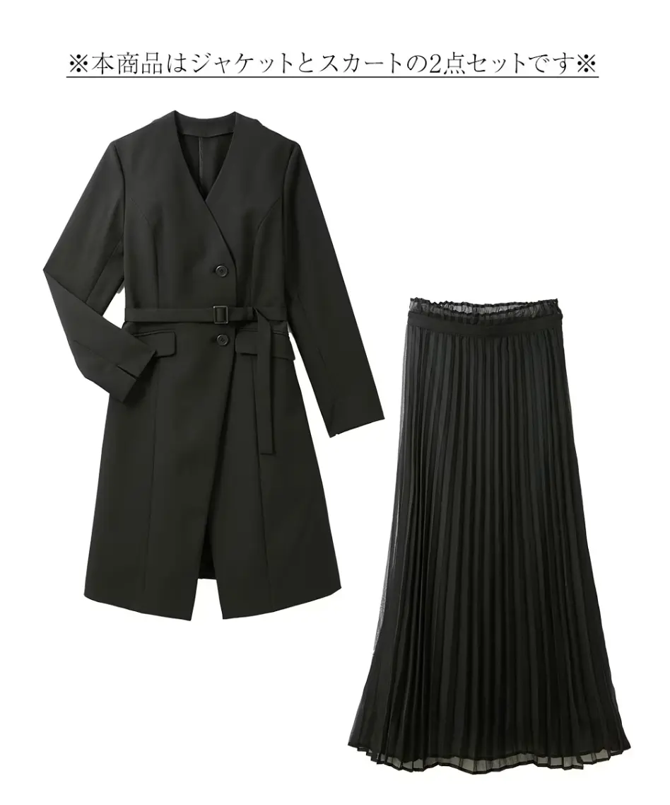 品質=[表地]ジャケット:ポリエステル95%・ポリウレタン5%(織物) スカート:ポリエステル100%(織物) スカートウエスト部分:ポリエステル95%・ポリウレタン5%(織物)