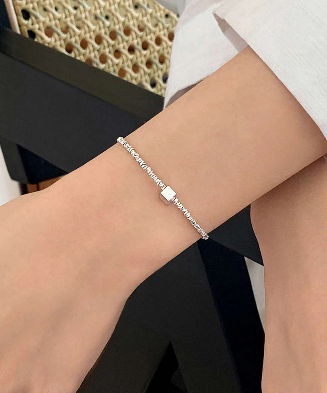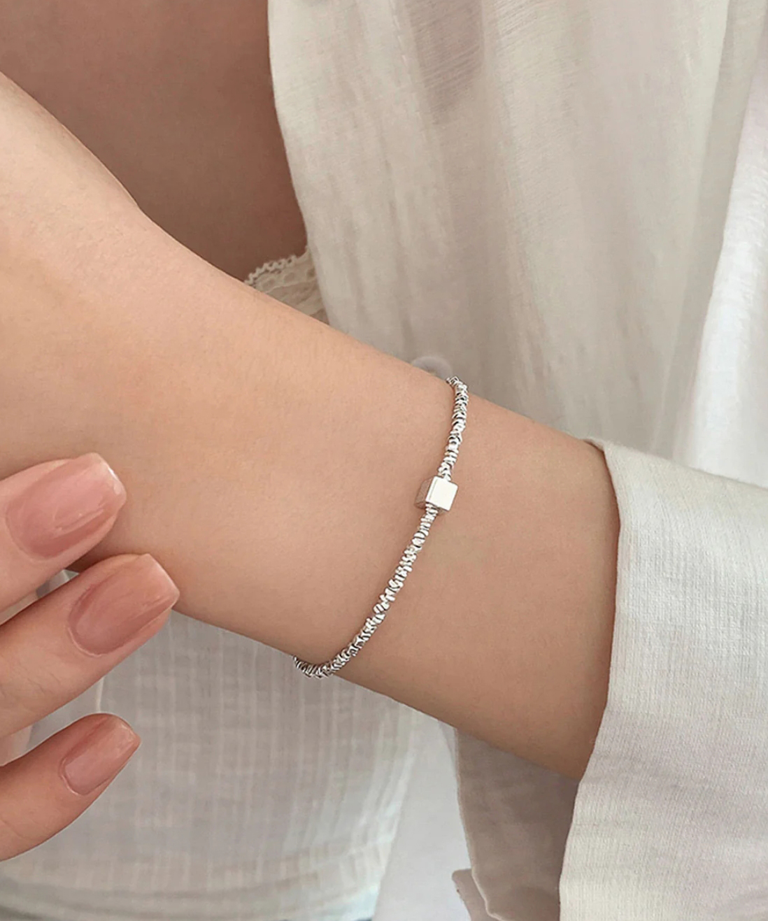 ミニマルなデザインと上品な輝きが、どんなスタイルにも溶け込むブレスレット。