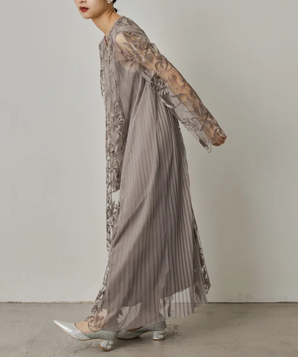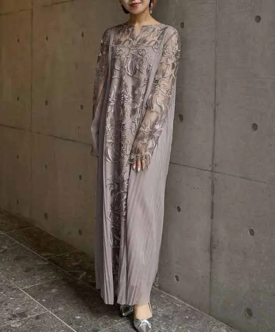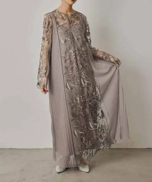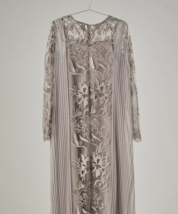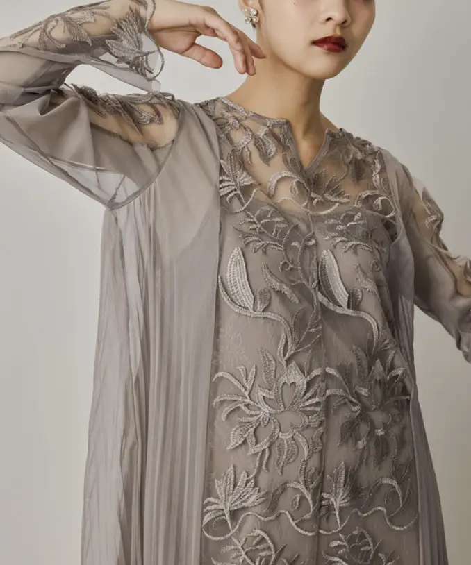 上品さと落ち着きを兼ね備えた一着でございます。やわらかな色味が肌なじみよく、さりげない華やかさを演出してくれるため、結婚式やパーティー、セレモニーなど幅広いフォーマルシーンでご活用いただけます。