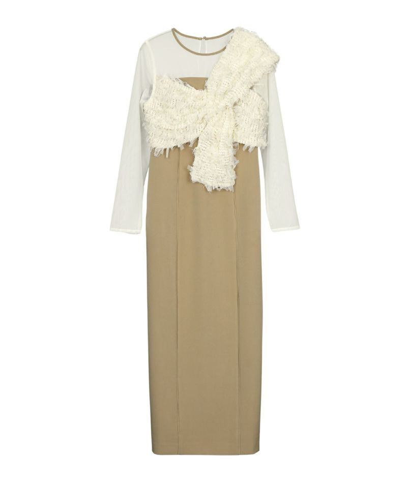 ラメ生地とノットデザインが特徴的な華やかな1着です。