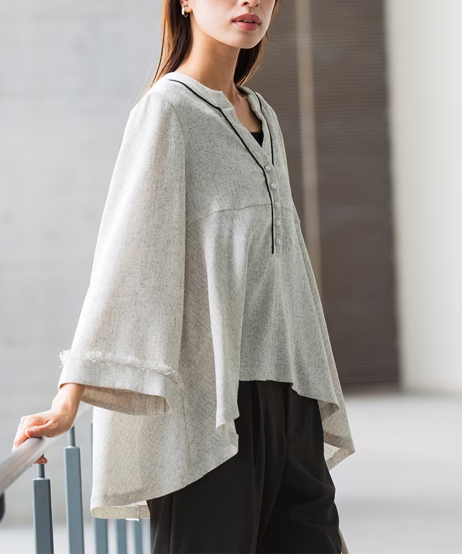 (ブラウス)バスト137cm x 肩幅44cm x 袖丈50cm x 二の腕廻り50cm x 袖口48cm x 着丈77cm x 裾廻り236cm