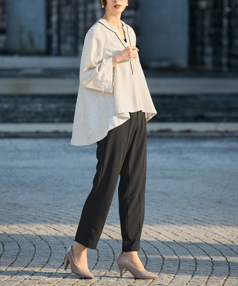 エレガンスな装いの着回しできる使いやすいパンツセットアップ。