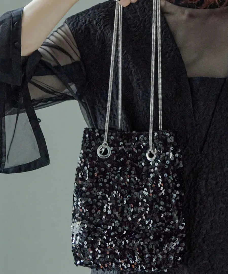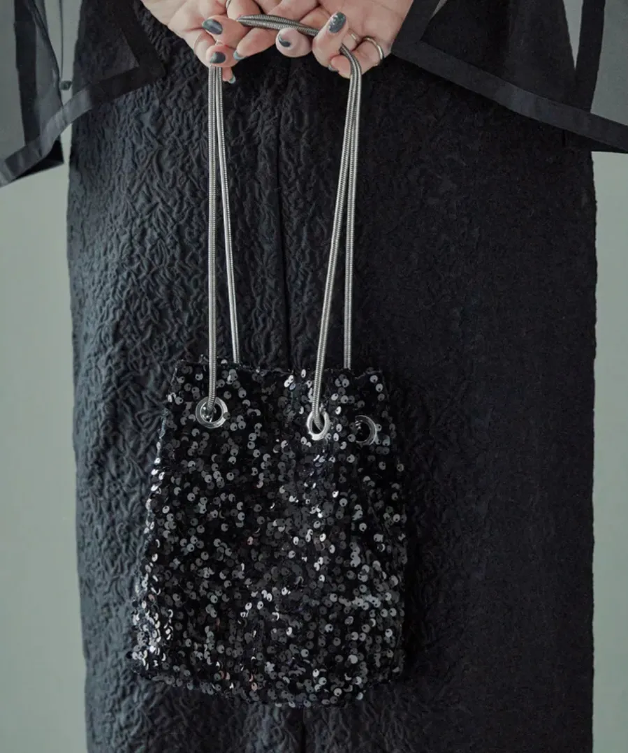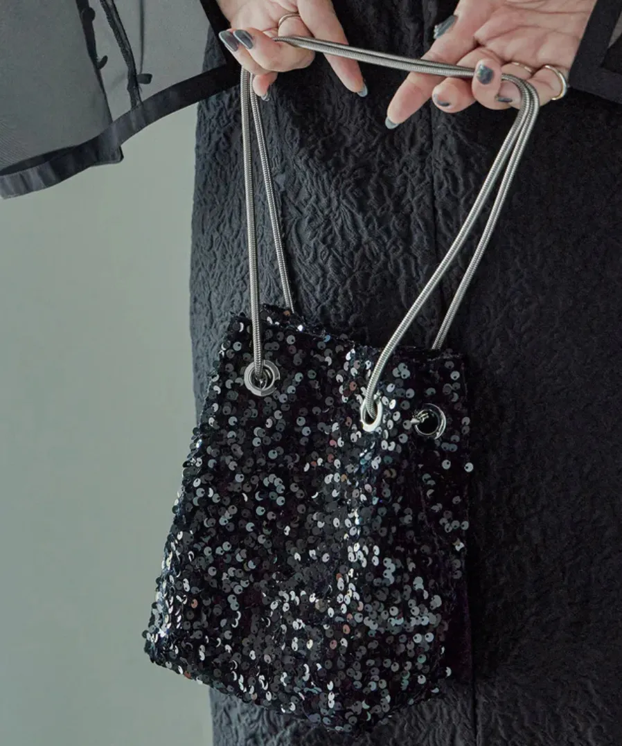 きらきら輝くスパンコールで存在感ある巾着スパンコールバッグ。