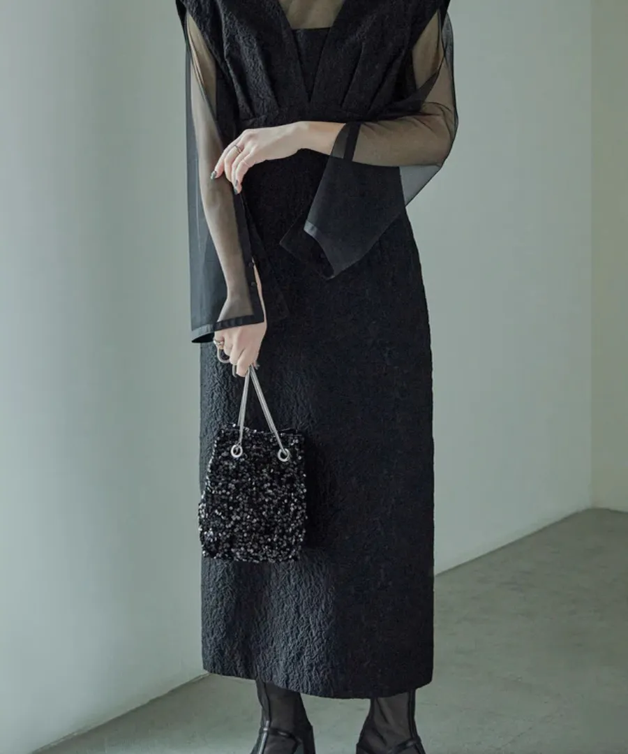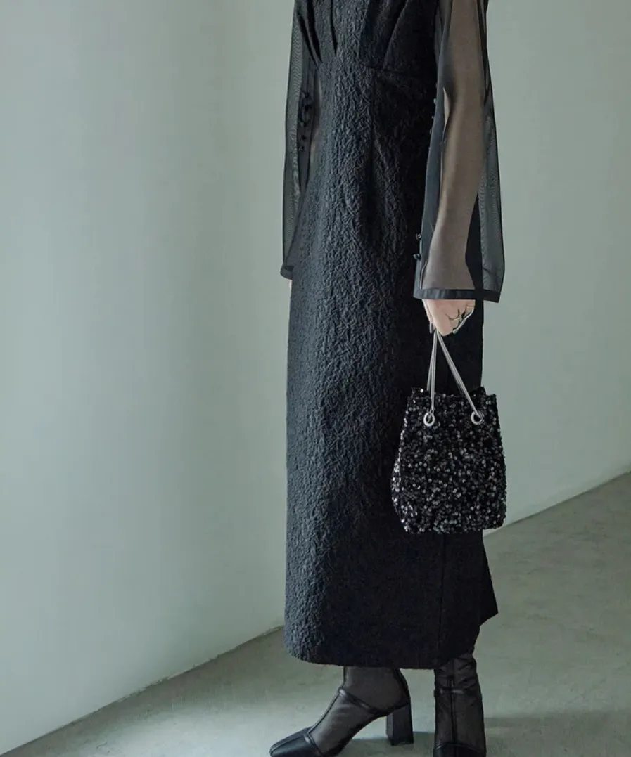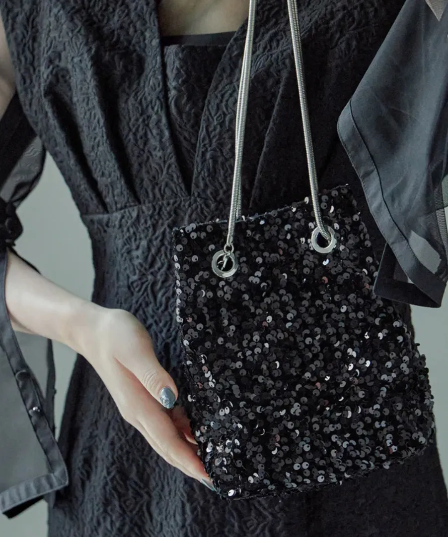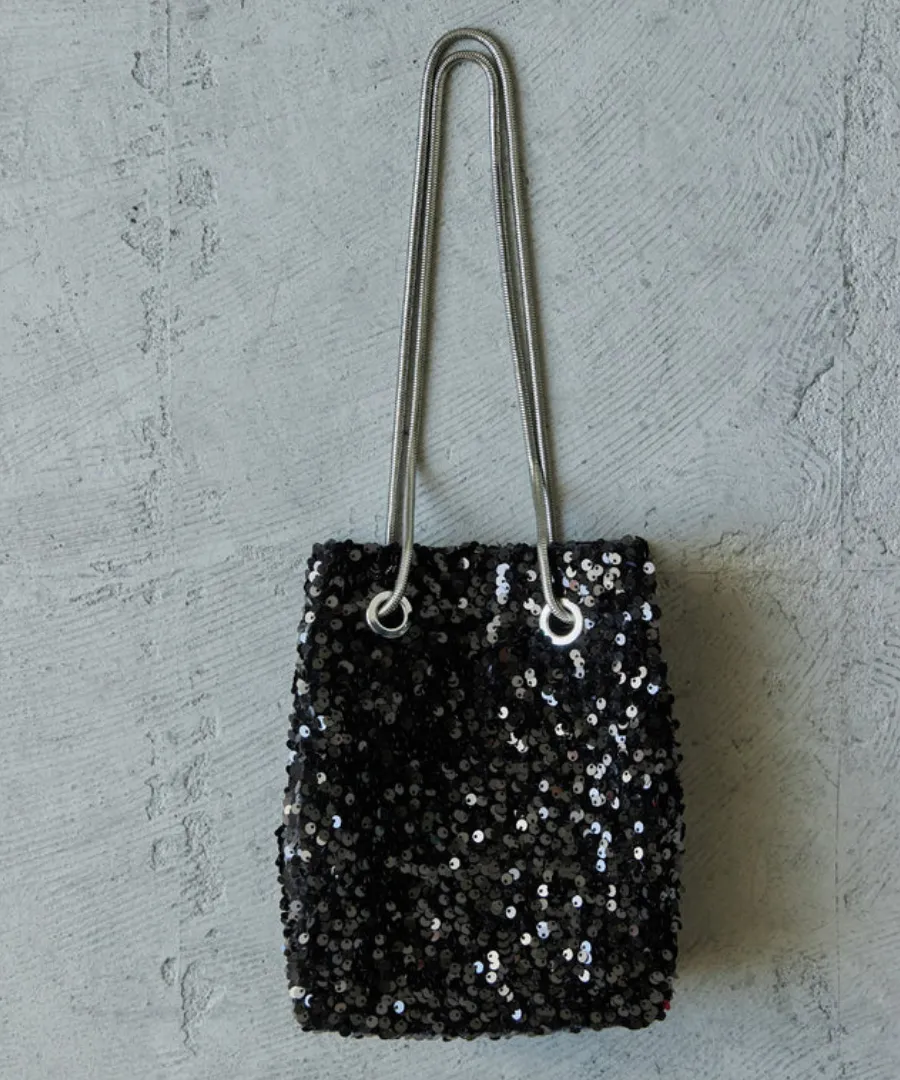 きらきら輝くスパンコールで存在感ある巾着スパンコールバッグ。