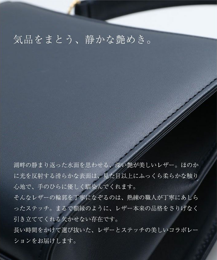 高品質なレザーを使用し、軽量で使いやすく、日常使いにも特別なシーンにもぴったりのバッグです。