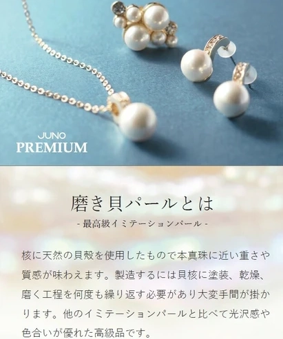 なめらかな表面加工が叶えるムラのない艶感。日本製貝パールやチェコクリスタルの上質で美しい輝き。熟練された職人が細部まで丹念にお作りしている、日本品質の極上の質感を味わえる高品質アクセサリーシリーズです。