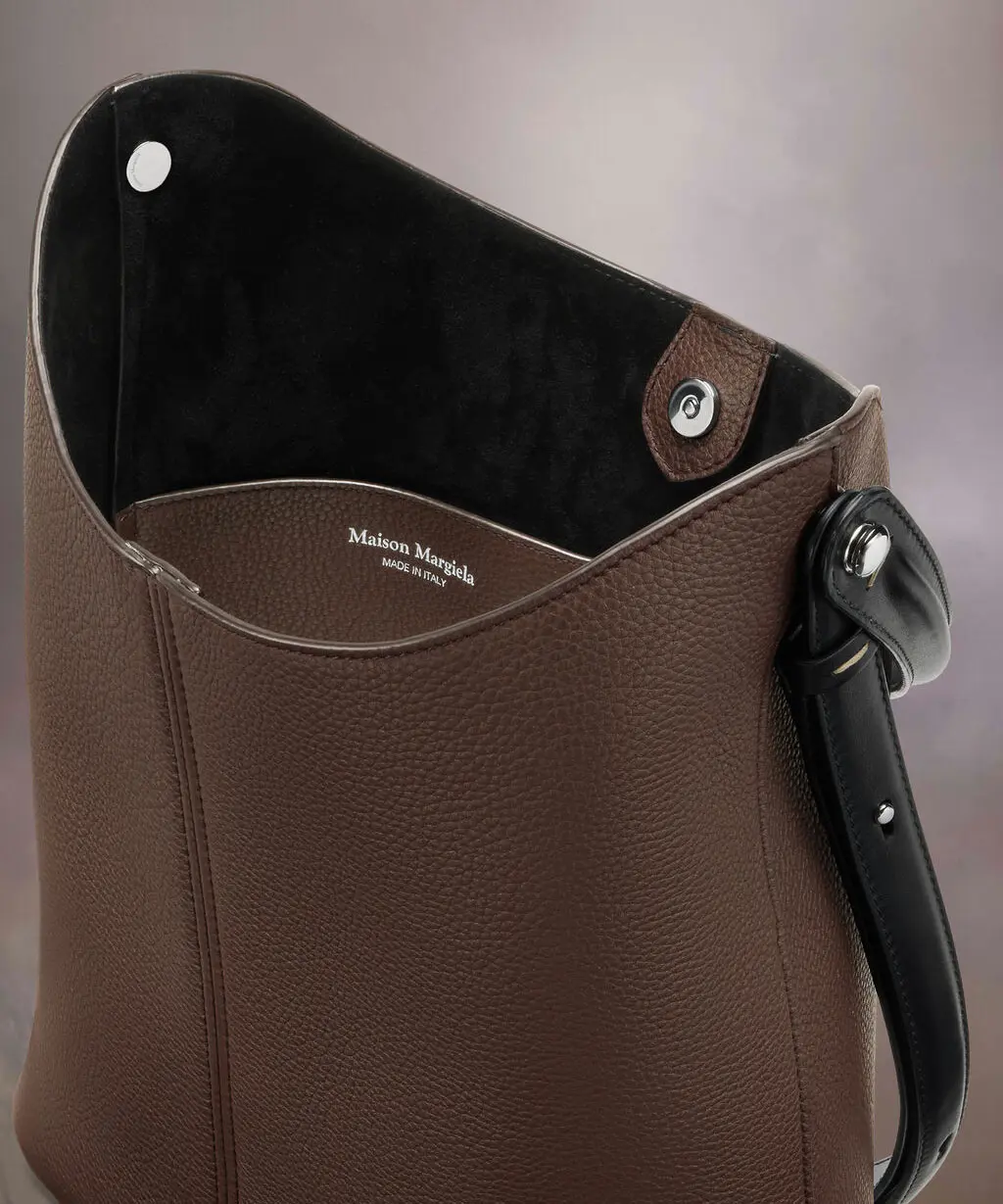 底面にはスタッズを配し、自立性も確保。内側にはロゴが配され、背面にはメゾン マルジェラの象徴である4本の白いステッチと、反対面にはラベルが施されています。