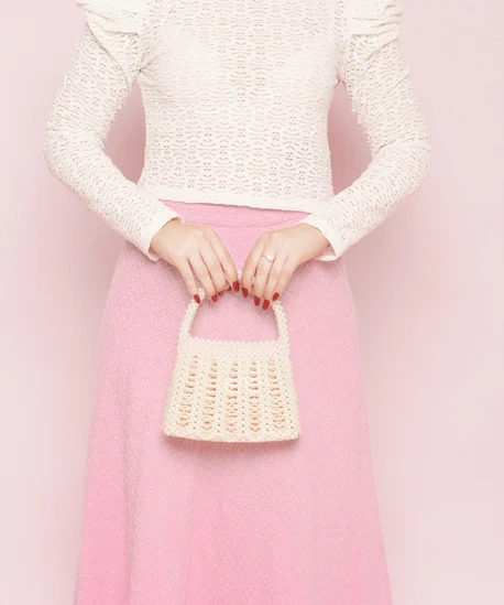 光を透過し、レースのような透け感をみせるミニバッグ。